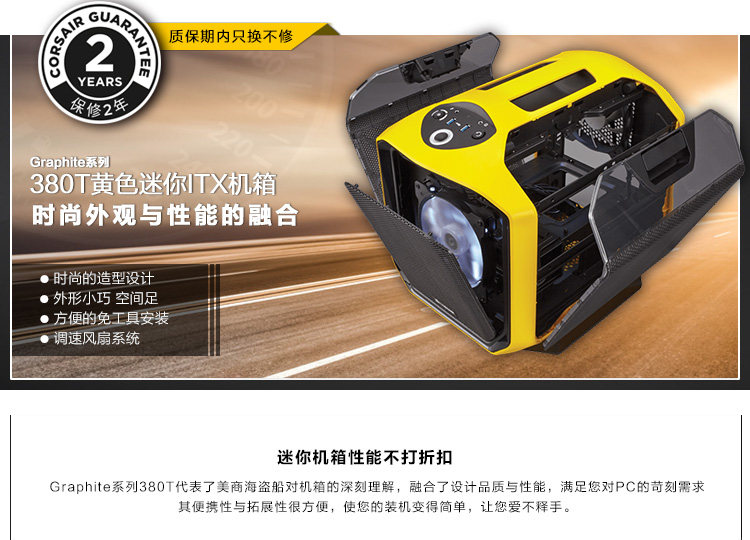 Corsair/Pirate Boat Graphite Series 380T Mini Itx Case Case Yellow/White Host