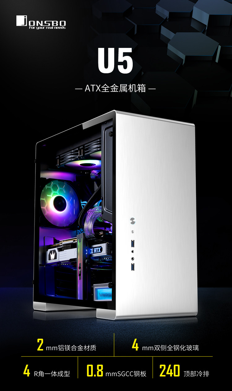 Jonsbo Josbo U5 U5 Полная алюминиевая оболочка ATX Computer Case поддерживает 240 холодного задних графических карт
