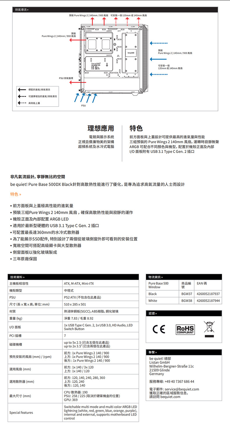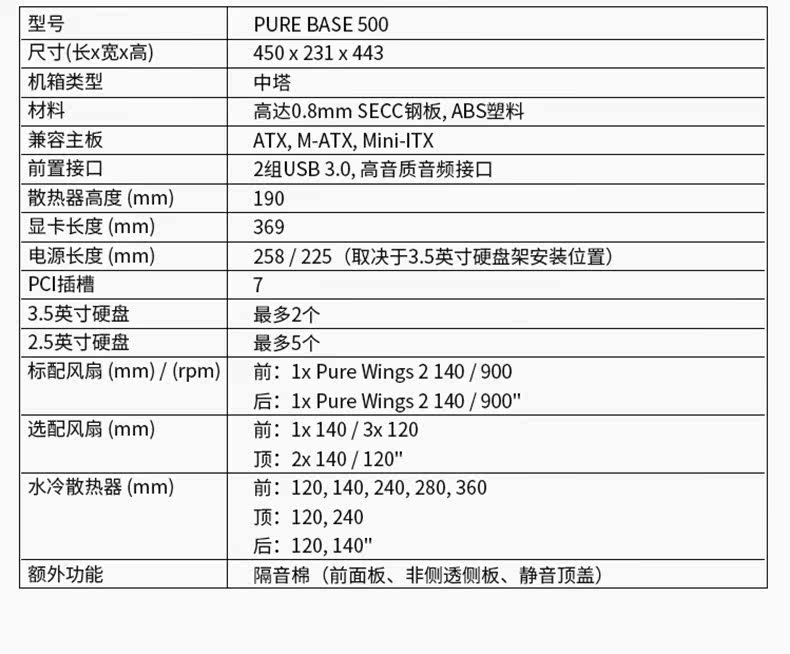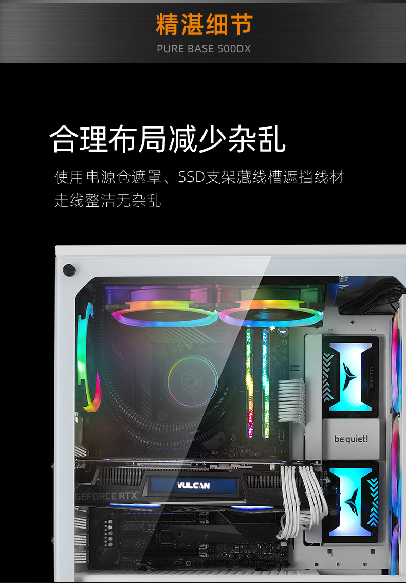 Немецкий и торговец должен быть крутым, будь тихо!Pure Base 500DX White Side Transparent Computer Case Case Desktop Water -Coolled Chassis Все стороны прозрачные стеклянные стеклянные световые эффекты Статическое шасси Статическое шасси