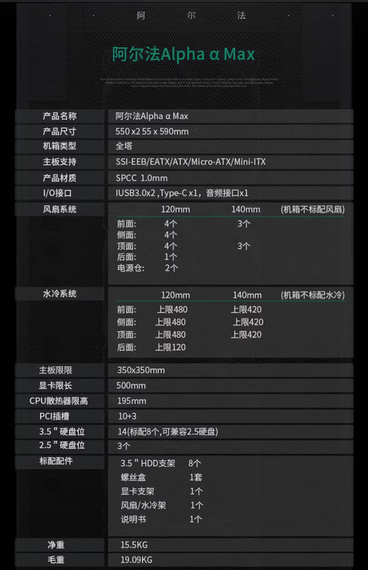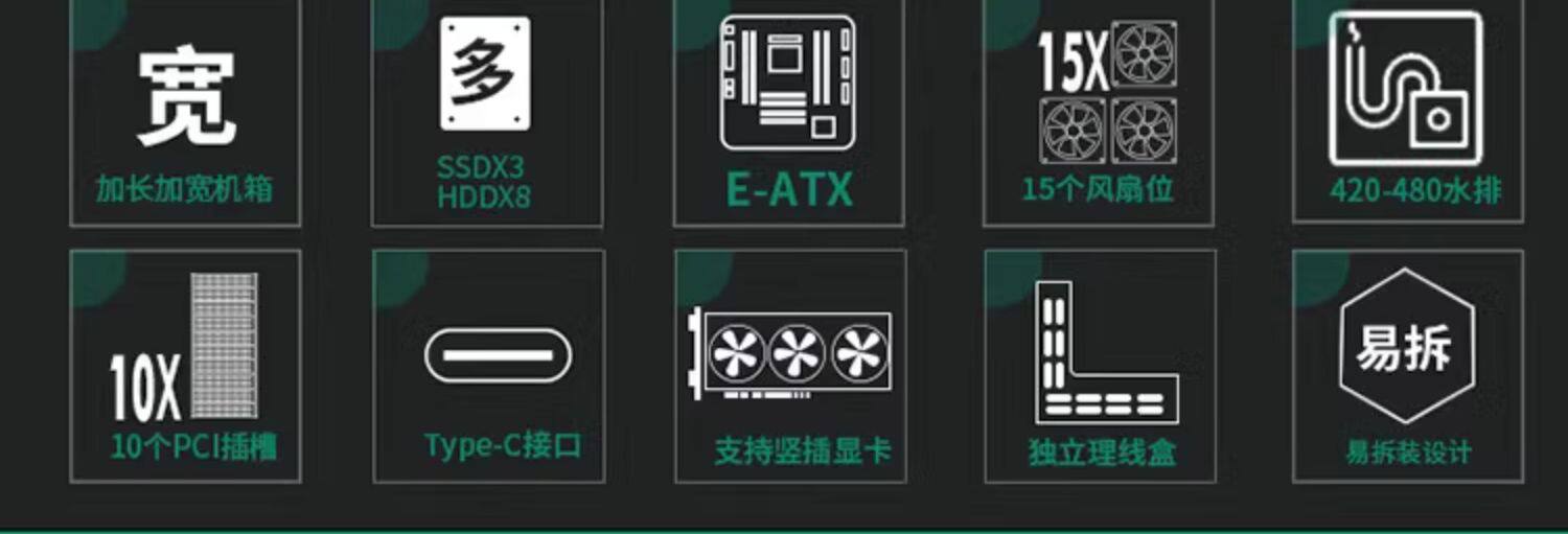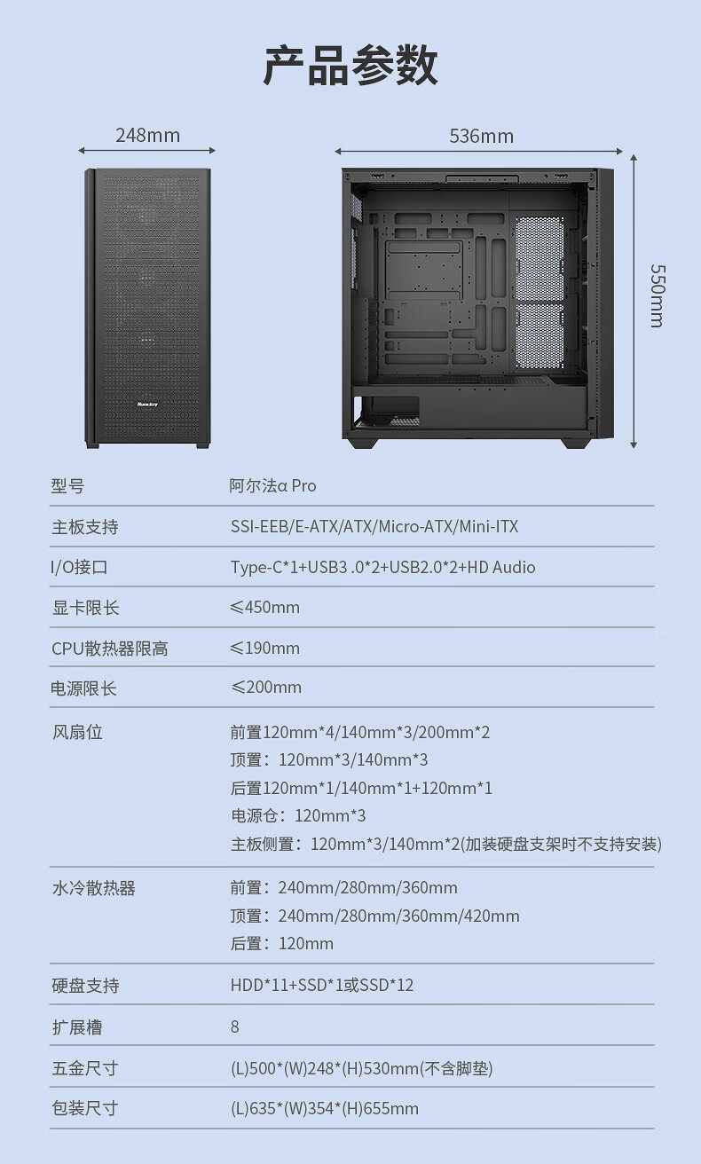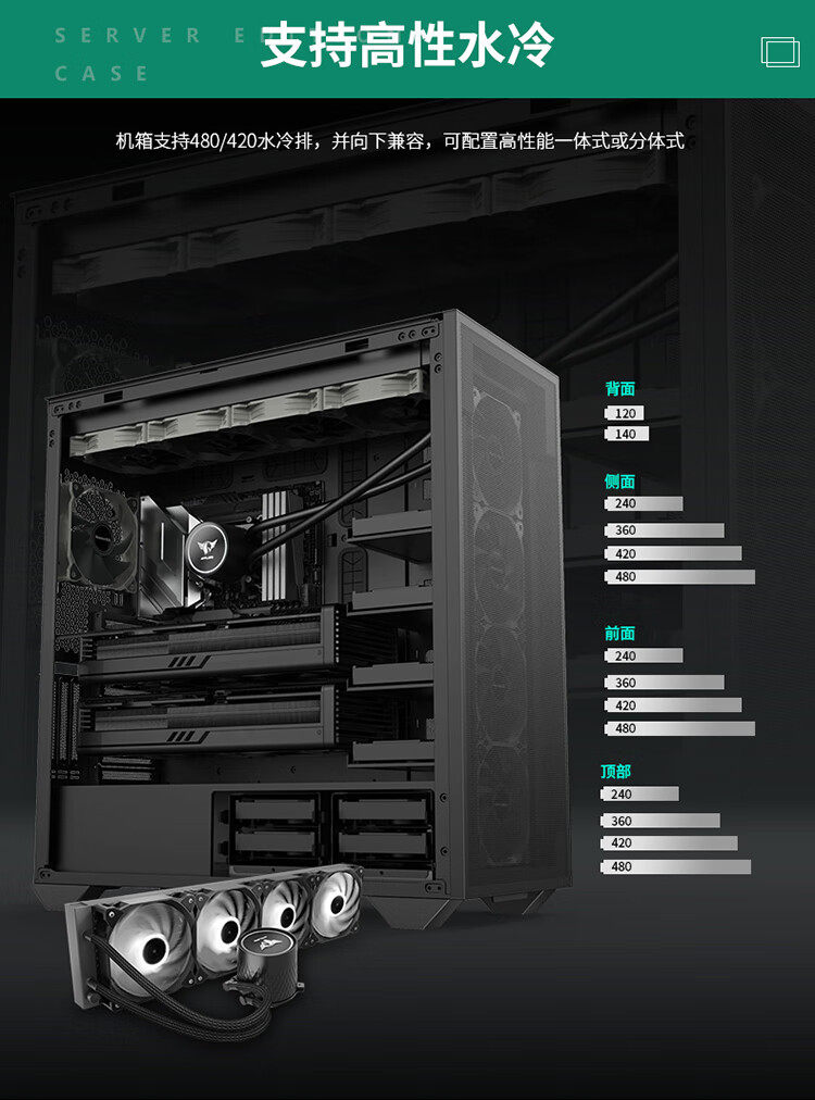 Hangjia Alpha Strokes Собрание компьютерной консоли E-ATX Шасси игровое шасси шасси водяное охлаждение шасси