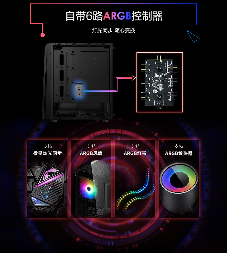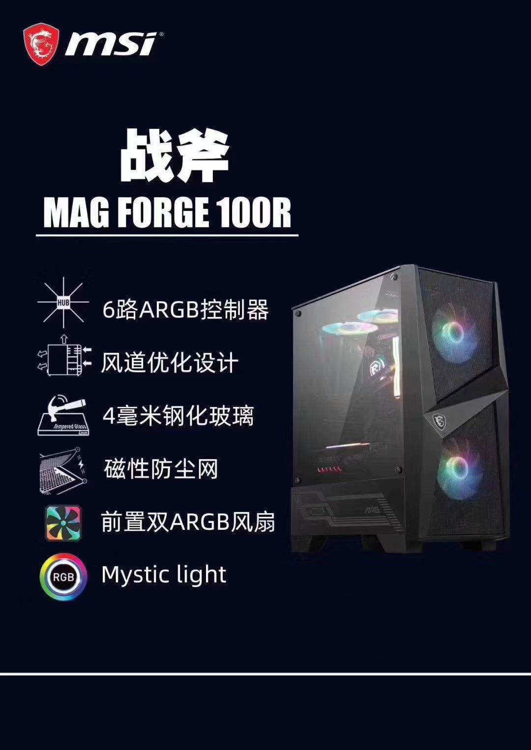 MSI/微星 Форга Томагавк настольный шасси DIY Компьютер боковой воздух -Трансланшена холодная вода Холодная сборка ATX RGB вентилятор RGB
