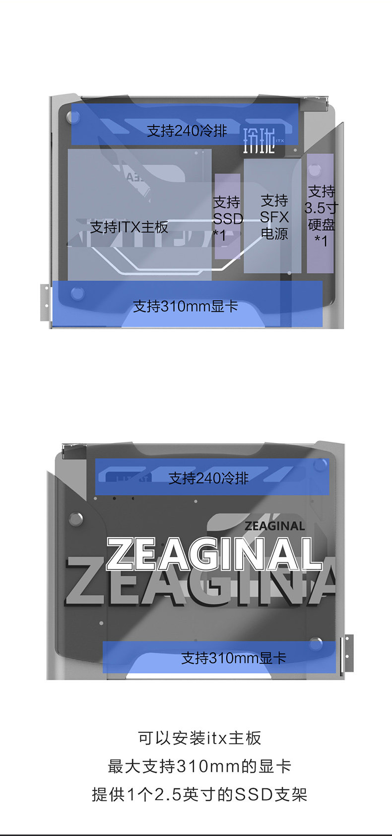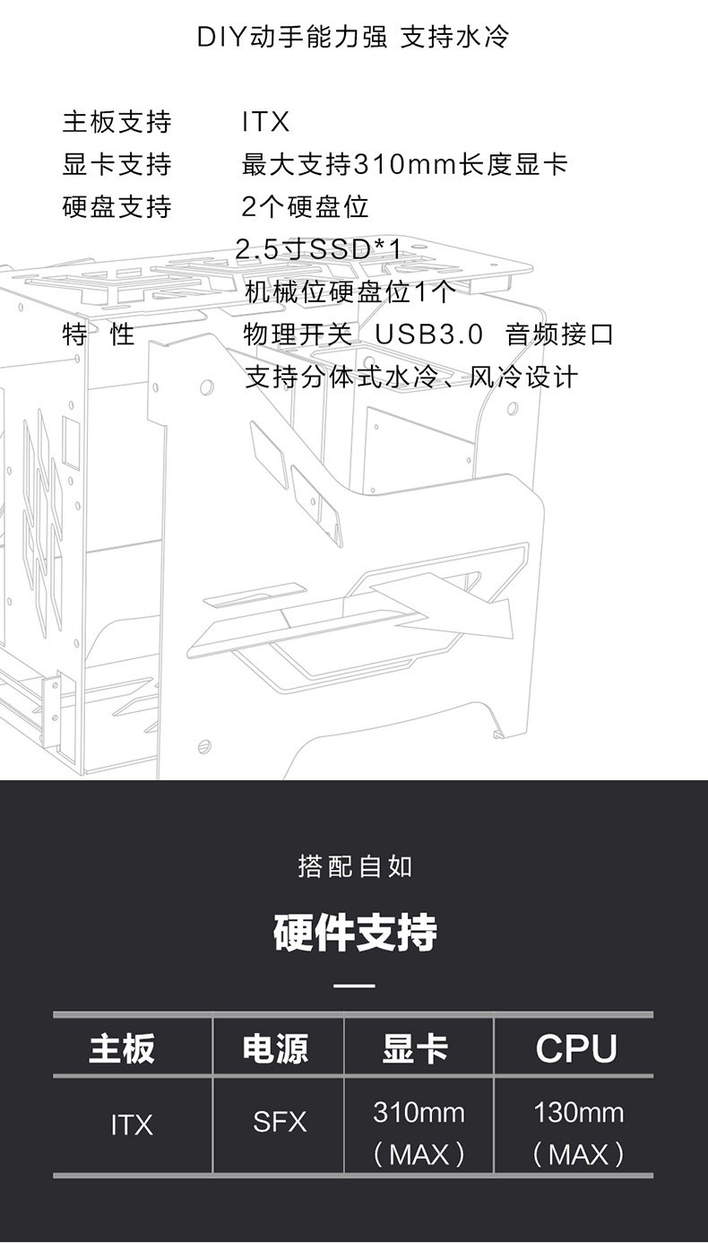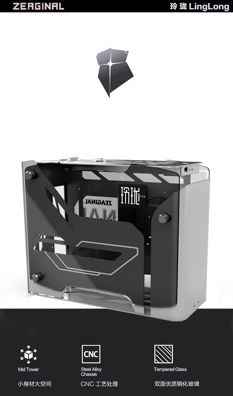 Чи-фрукты Zc-Linglong ITX Шасси Все-алюминиевая стальная сталь испытанная стеклянная настольная настольная компьютер Mini Mini Chassis