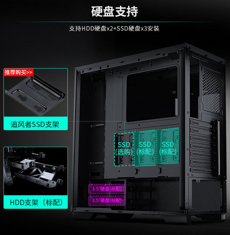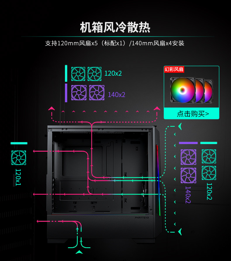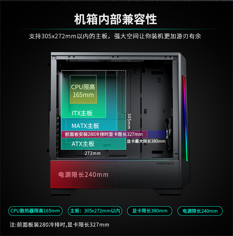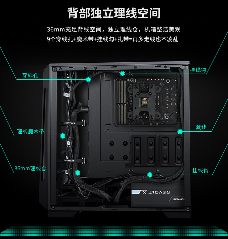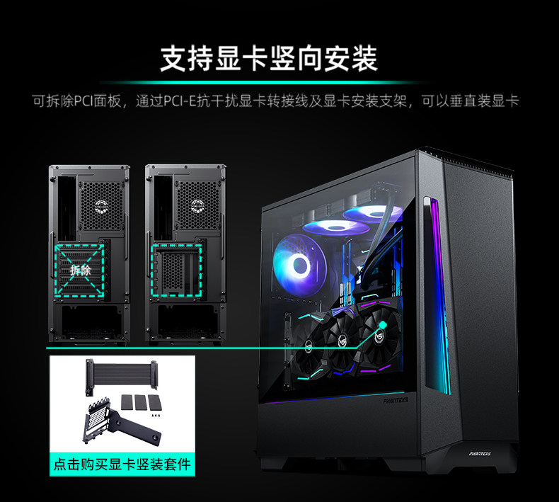 Phanteks Chaser p360x черная средняя башня стальная стеклянная платформа Phantom Phantom Computer Water -Coolse Chassis