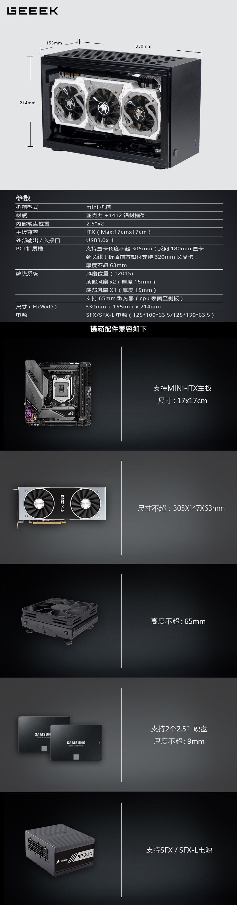 GEEEK A50S Обновление трех -Grove Version A4 SFX New PC Mini ITX Transparent Chassis