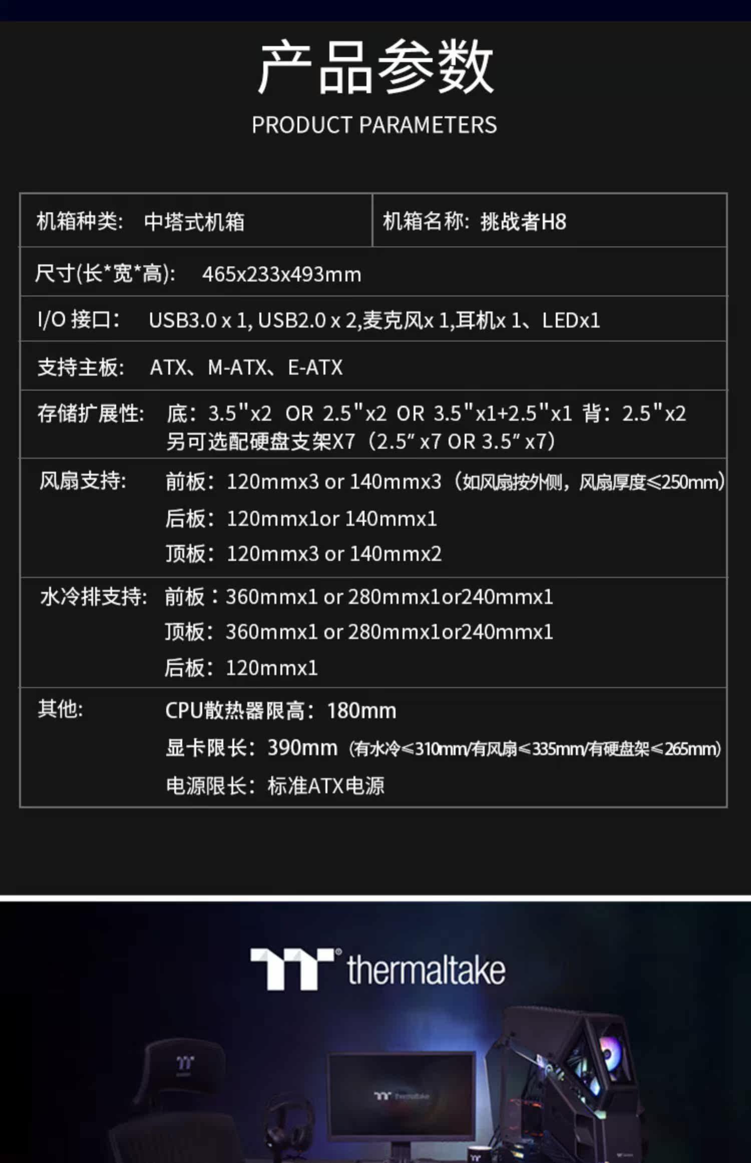 TT Challenger H8 Chassiform Machine Machine Cooper Game New Water Cooling и Silent Case