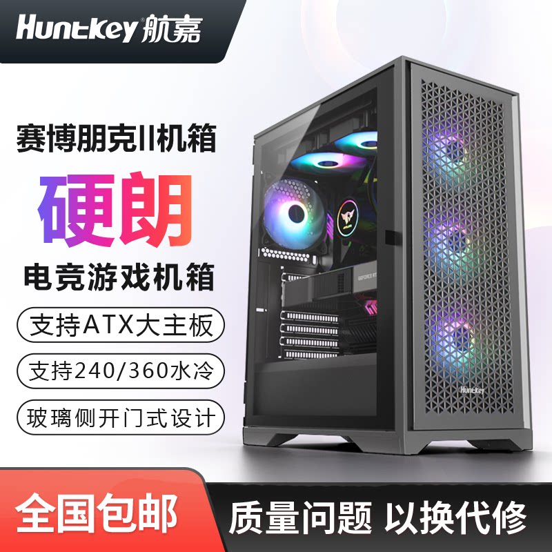 Huntkey/航嘉 Cyberpunk 2 шасси настольные компьютерные факультеты OTX с большим стеклянным стеклянным боковым стеклом 240/360