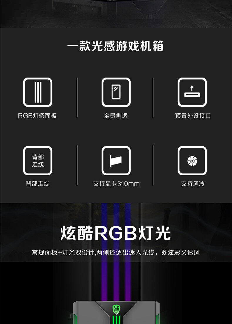 动力火车 Темный Меч Белый/Черный Цветной RGB Световой Эффект Стеклянная Сторона Прозрачный Настольный Компьютерный Игровой Пустой Чехол с Задней Линией