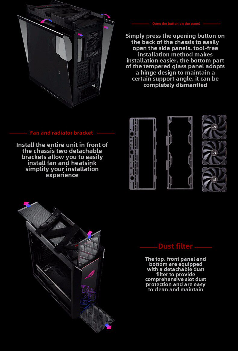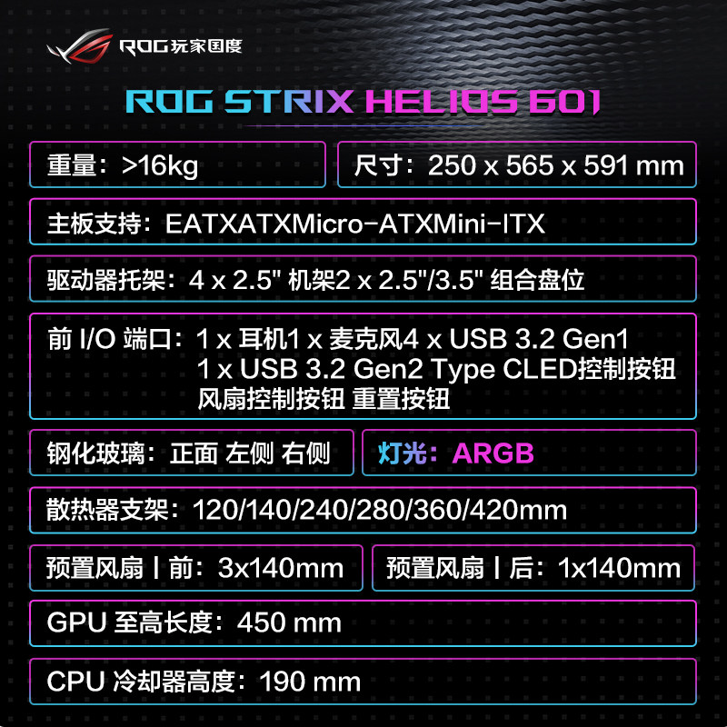 Rog Sun God Case GX601 Полная башня прозрачная игра -хозяин водяной охлаждение