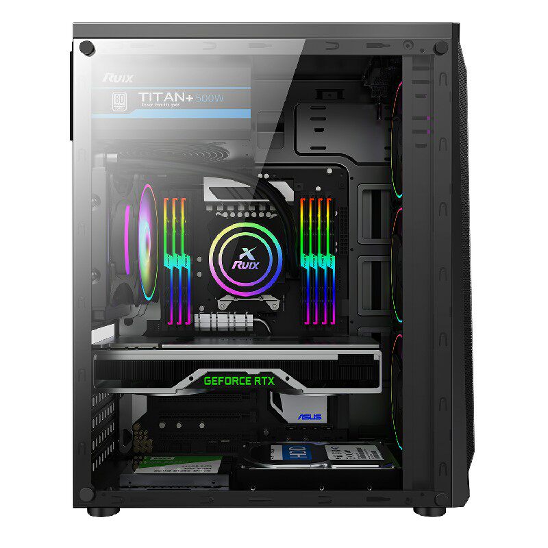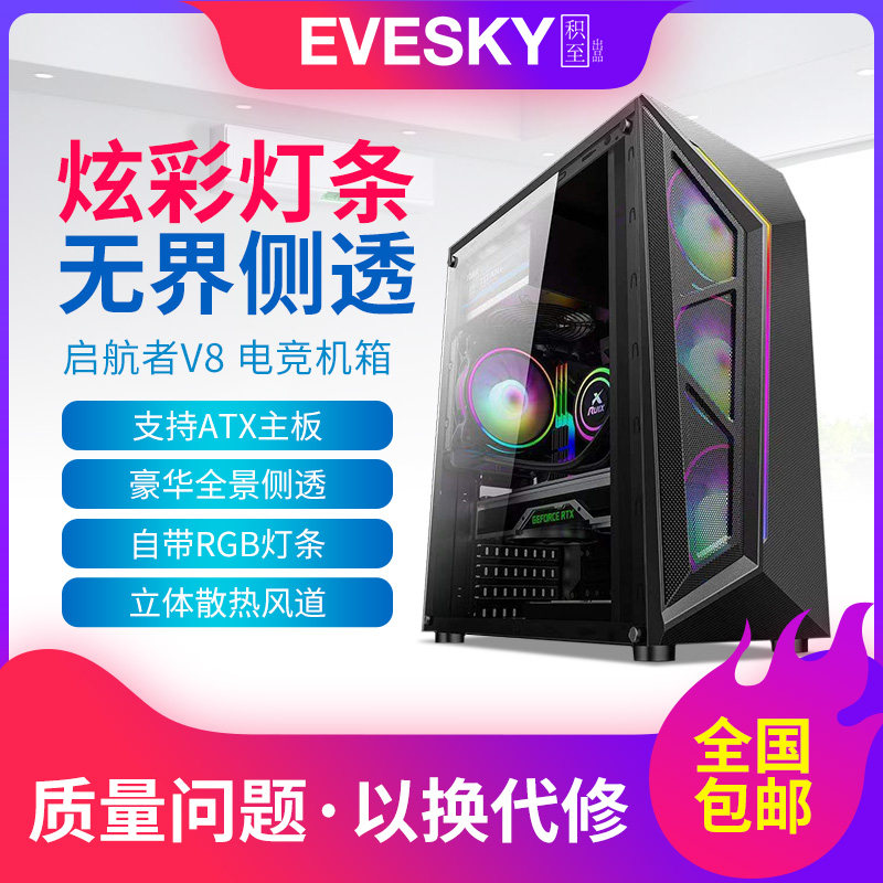 Накопленная до Evesky Qi Navigation V8 Компьютерный персонаж DIY DIY DIY Полно -сайт RGB Game -COOLDED ATX Шасси