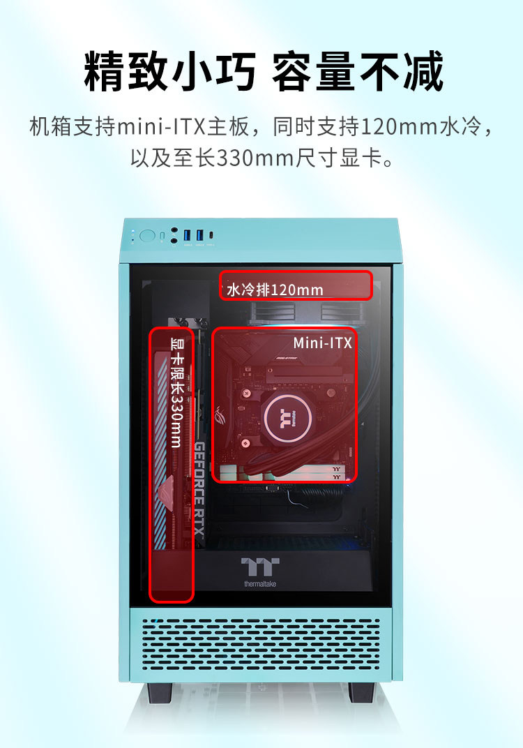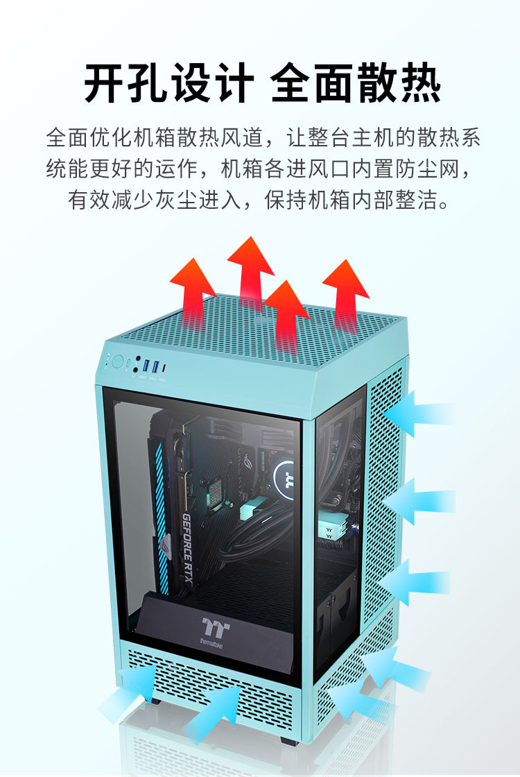 TT Desktop Compusters Case Case Tower 100 Panoramic в вертикальном положении