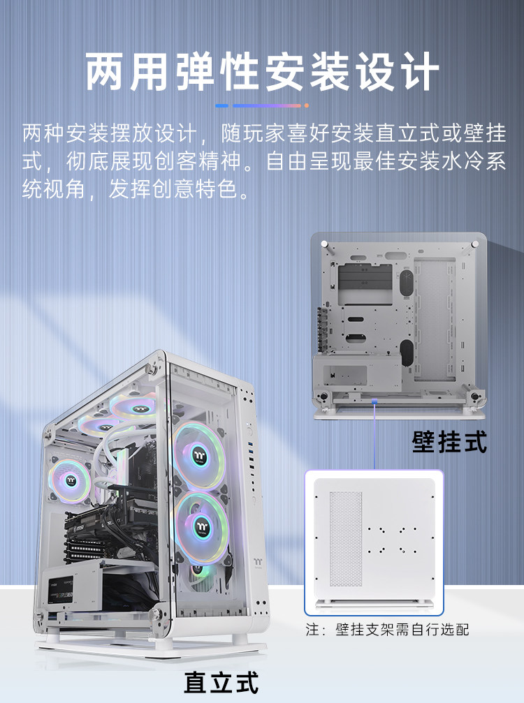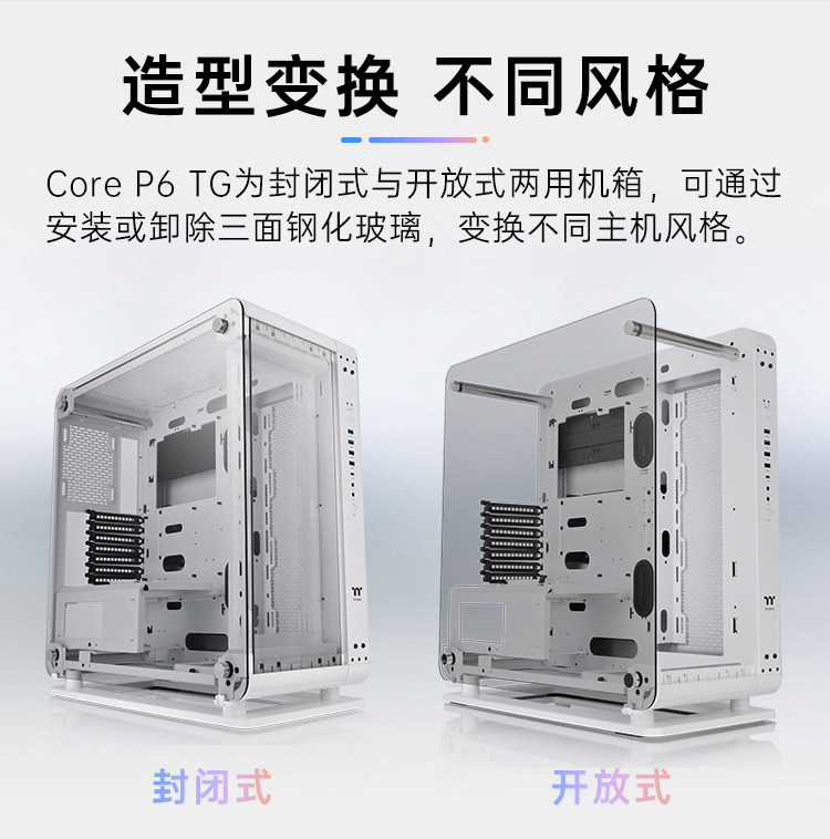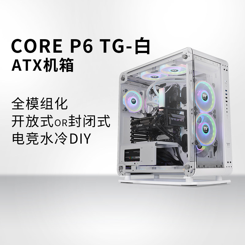 TT Core P6 TG White Computer Host Diy E -Sports Water Cold Chassis Двойная упругая установка