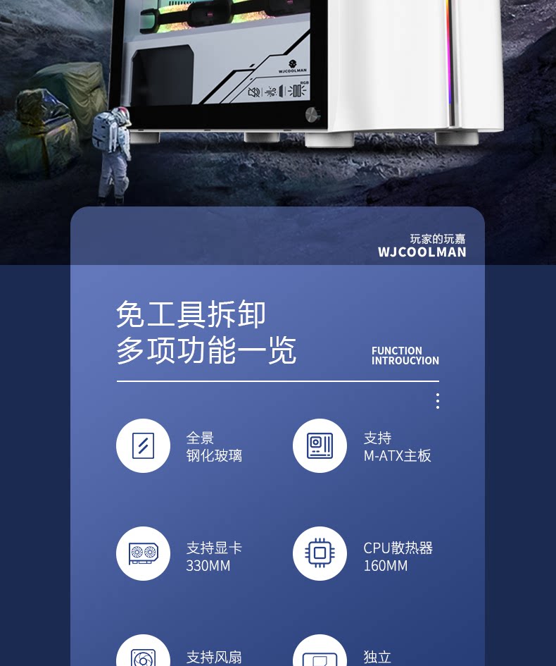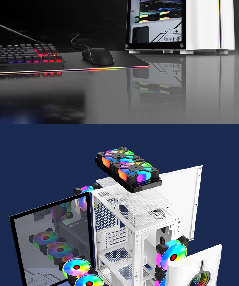 玩嘉 Неограниченный хост игрока корпус M-ATX прозрачная тихой игре мини-настольный компьютер с водой-охлаждающим