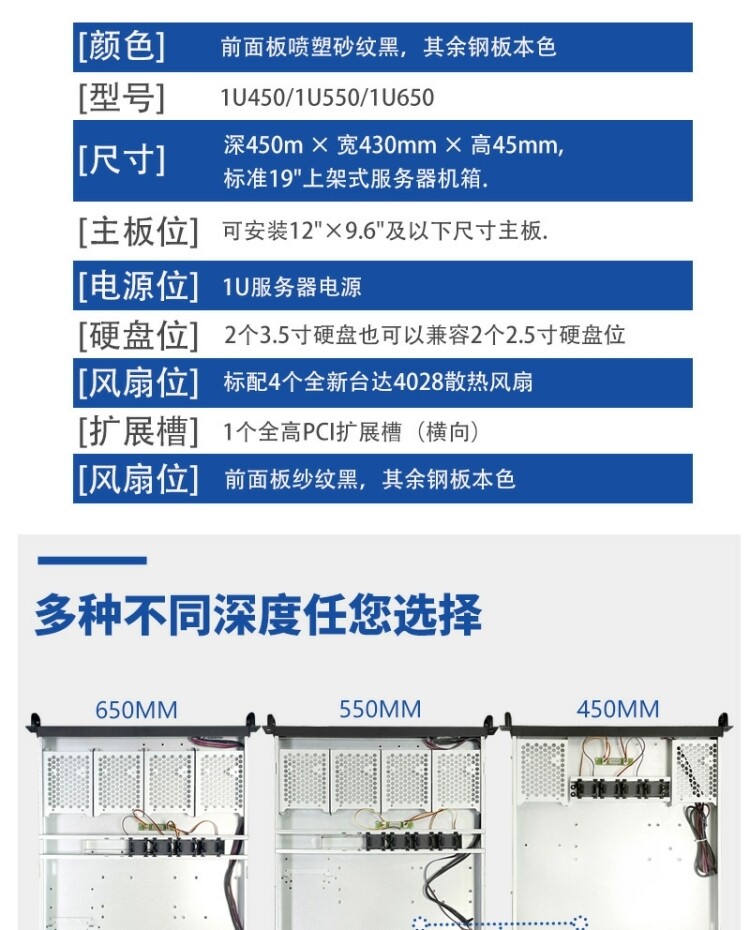 | Цвет: | 1U450 глубокий шасси, 1U550 глубокое шасси, 1U650 глубокое шасси, Нестандартная настройка |