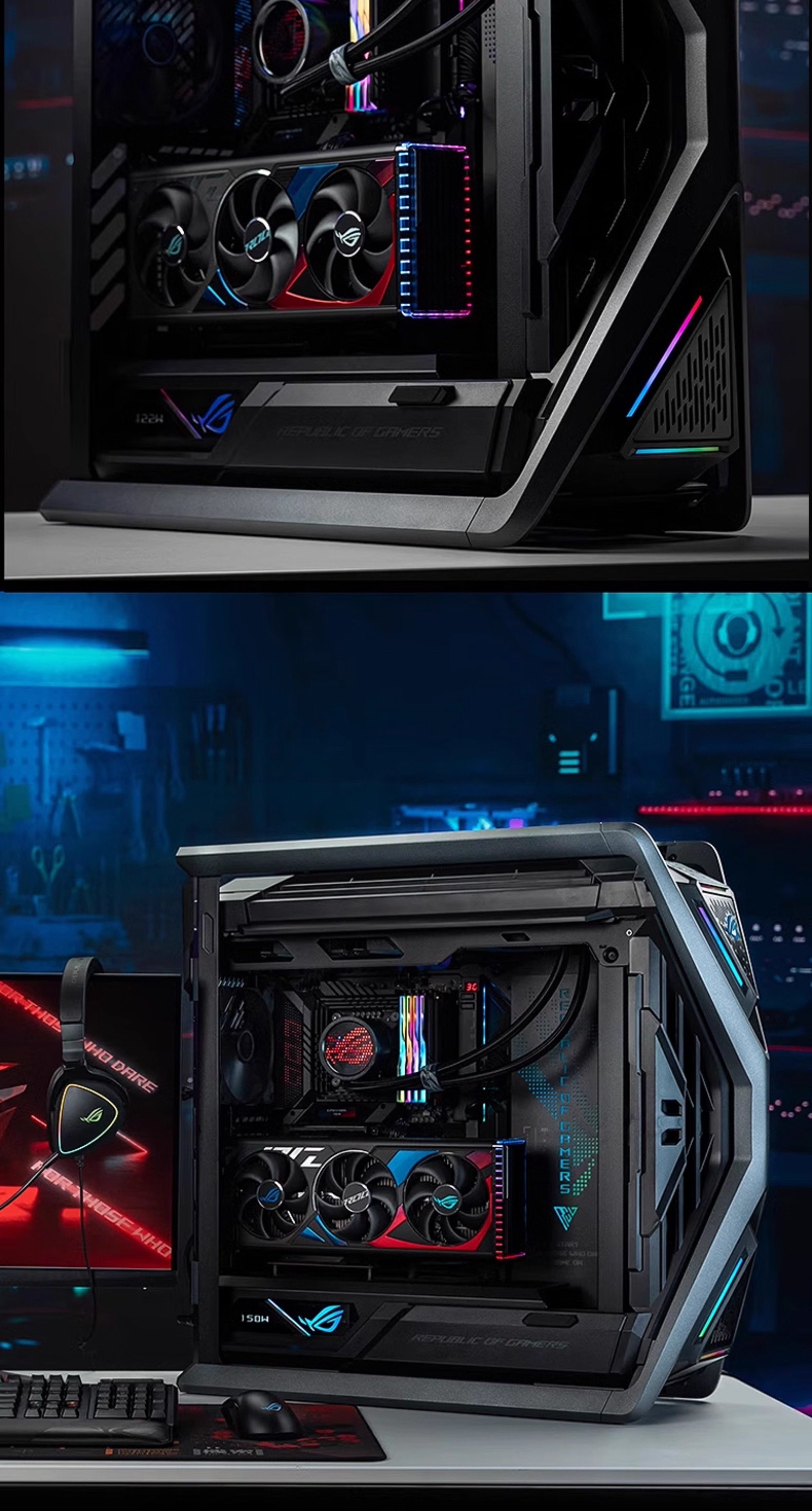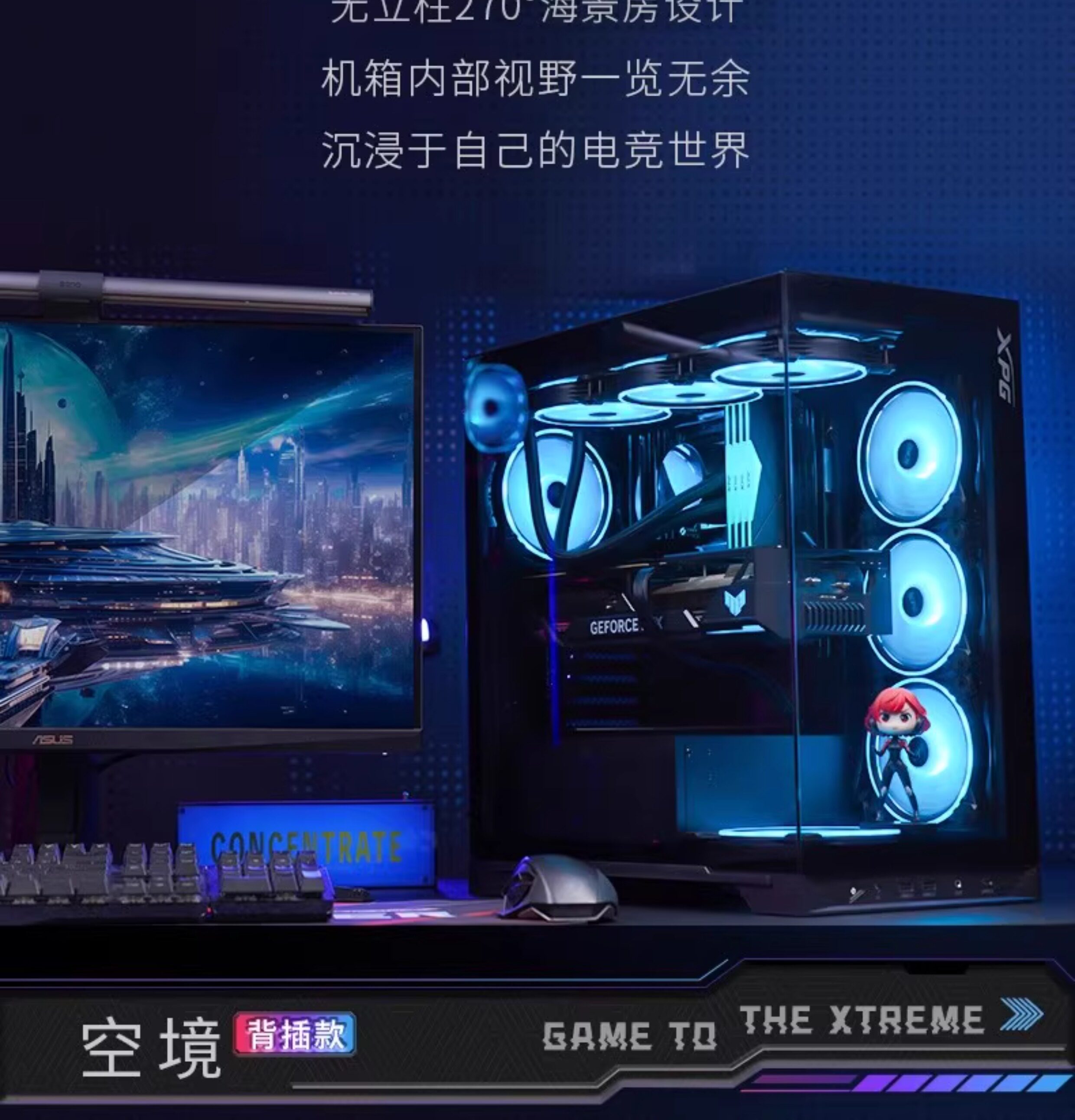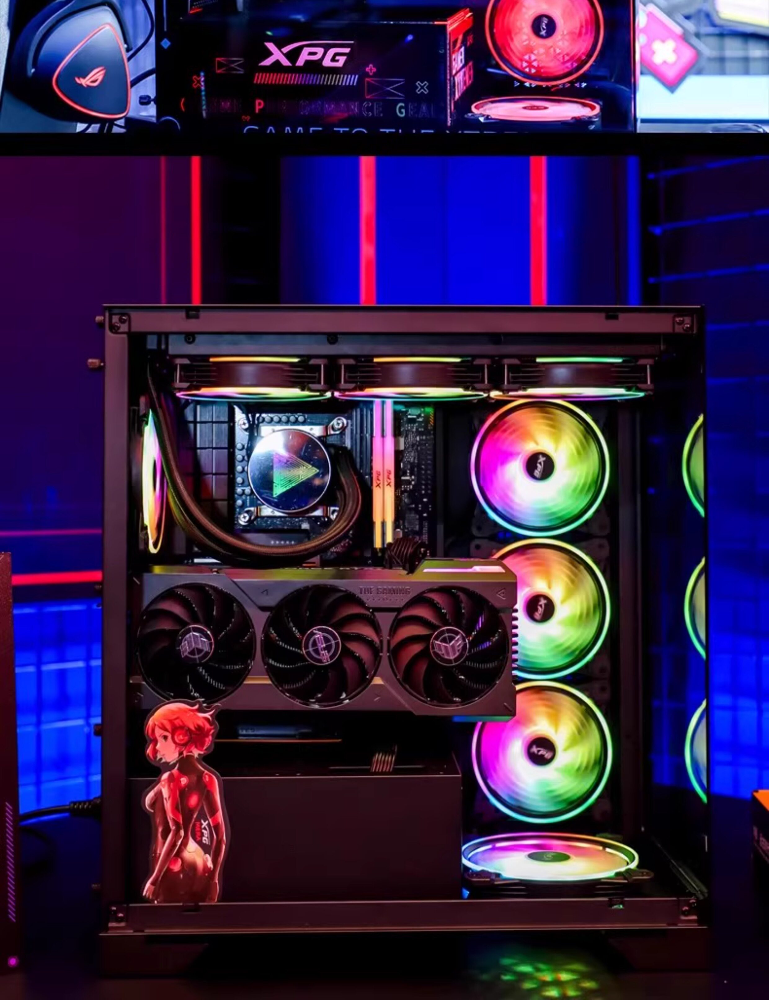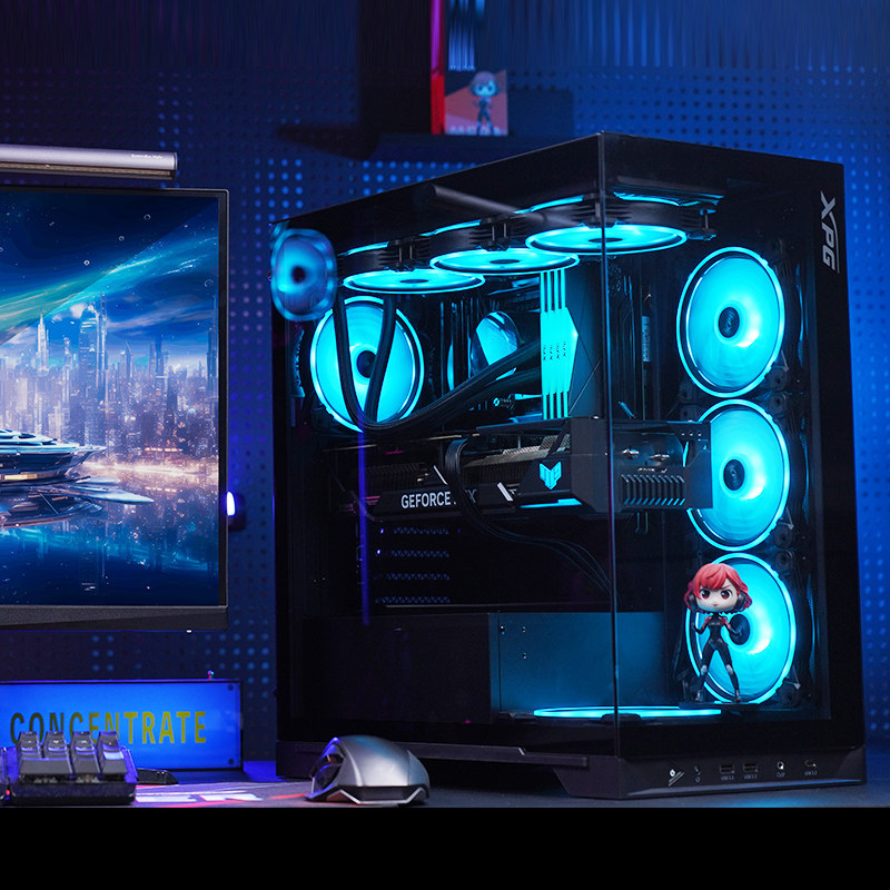 Прозрачный корпус настольного компьютера ADATA со стороны ASUS ROG Shadow Chasing Sun God Creation God Ice Cube Склад боеприпасов вид на море