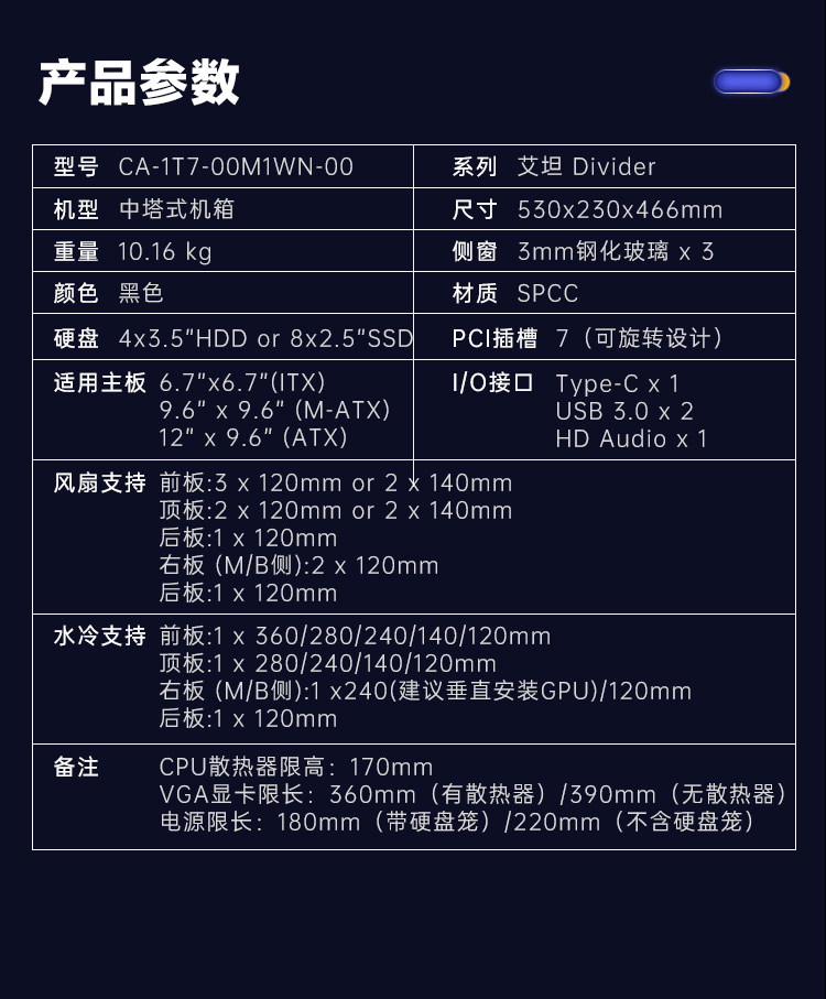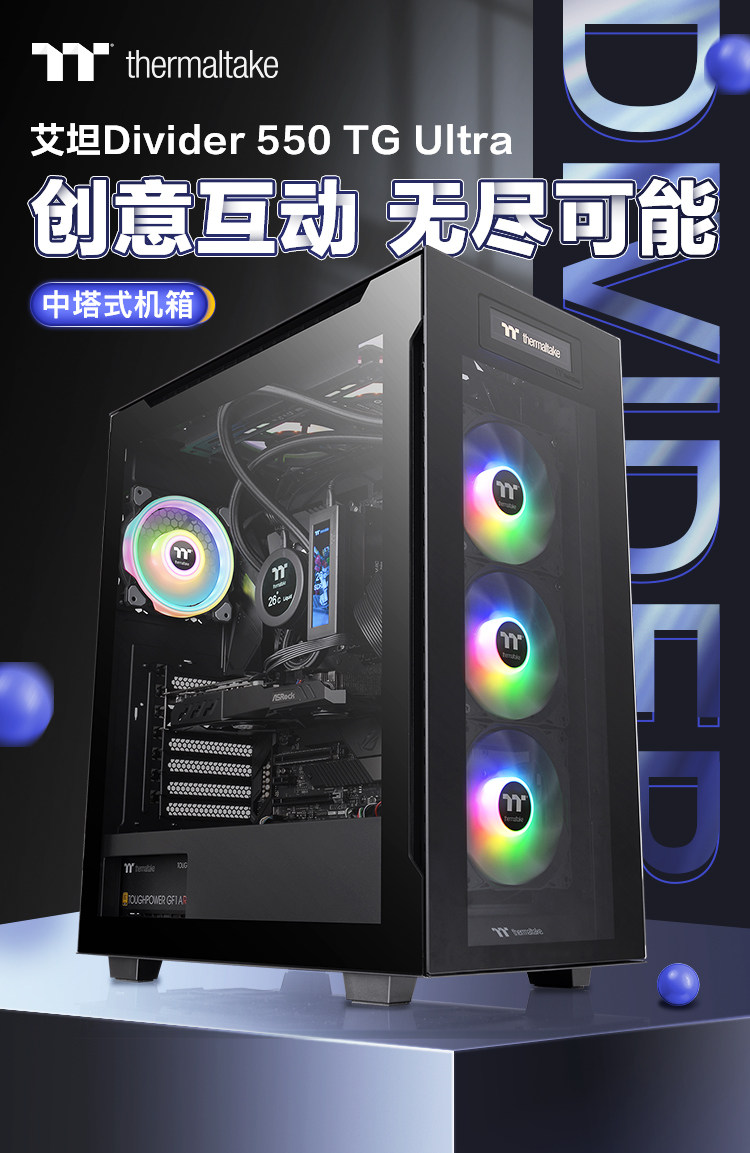 TT Desktop Computer Water Cold Chassis Aitan Divider 550 TG Ultra Type-C