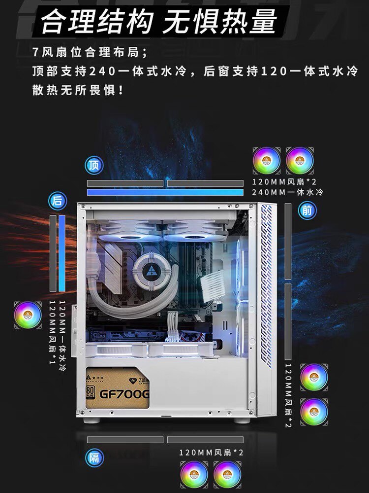 Jinhetian Glory 2pro шасси на рабочем столе белый компьютер хост компьютер с открытой водой -наболенная сторона маленькая шасси матса
