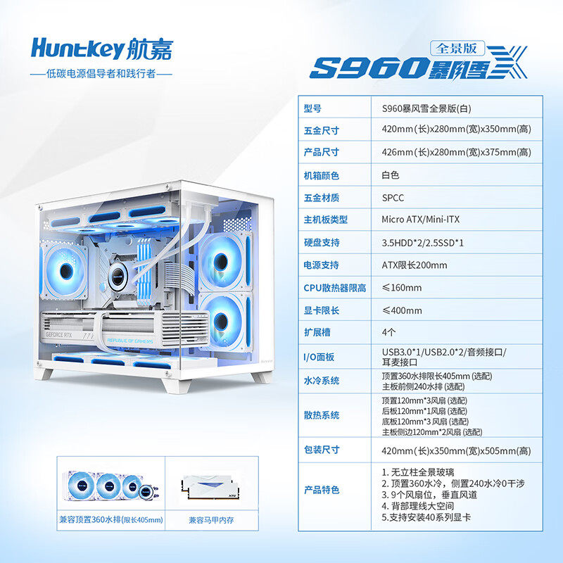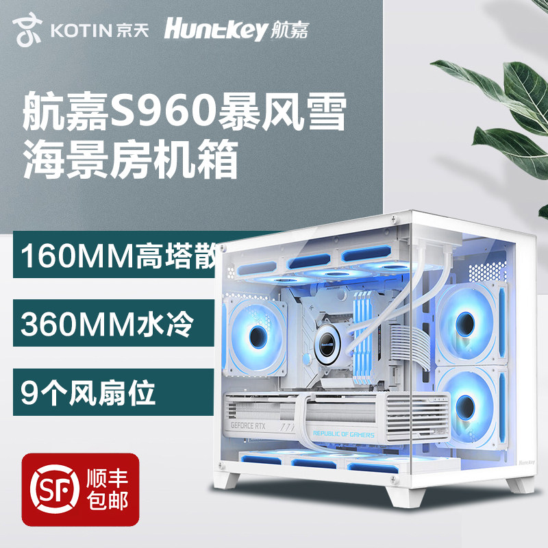 Корпус для компьютера Huntkey S960 Blizzard с видом на море, полносторонний прозрачный настольный хост MAXT/ITX, маленькая плата с водяным охлаждением