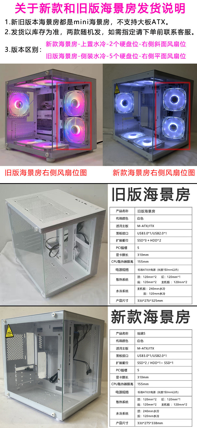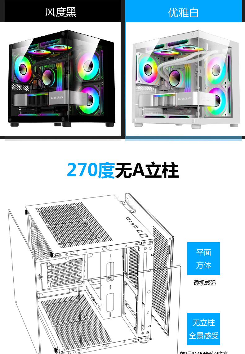 Нет стойки -Посмотреть на море -тип компьютерной шасси панорамная сторона, угрожающая 240 водяным шасси мат -белым неорфаном