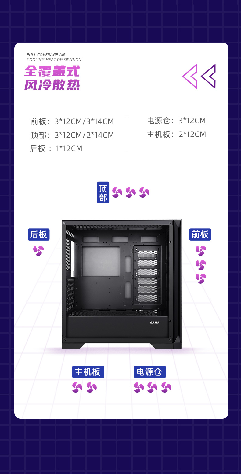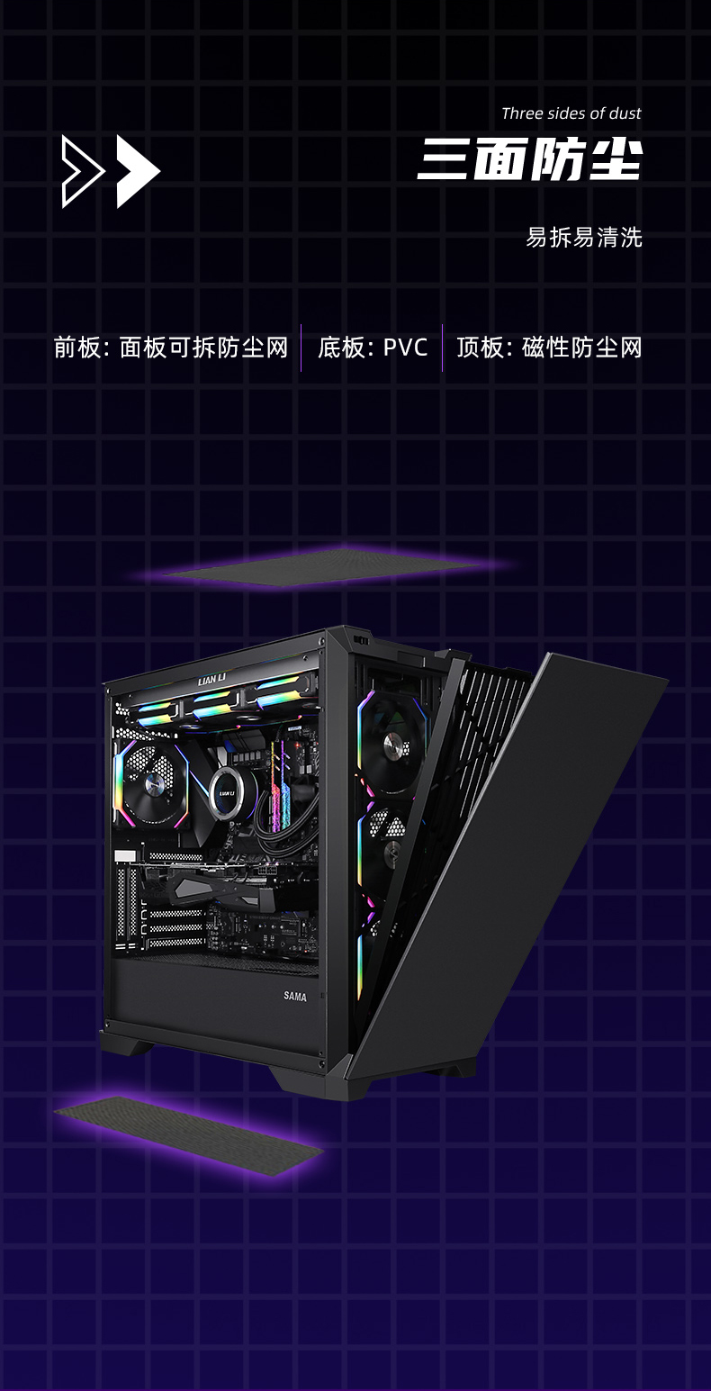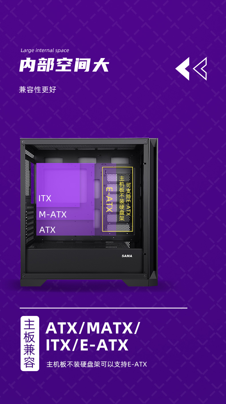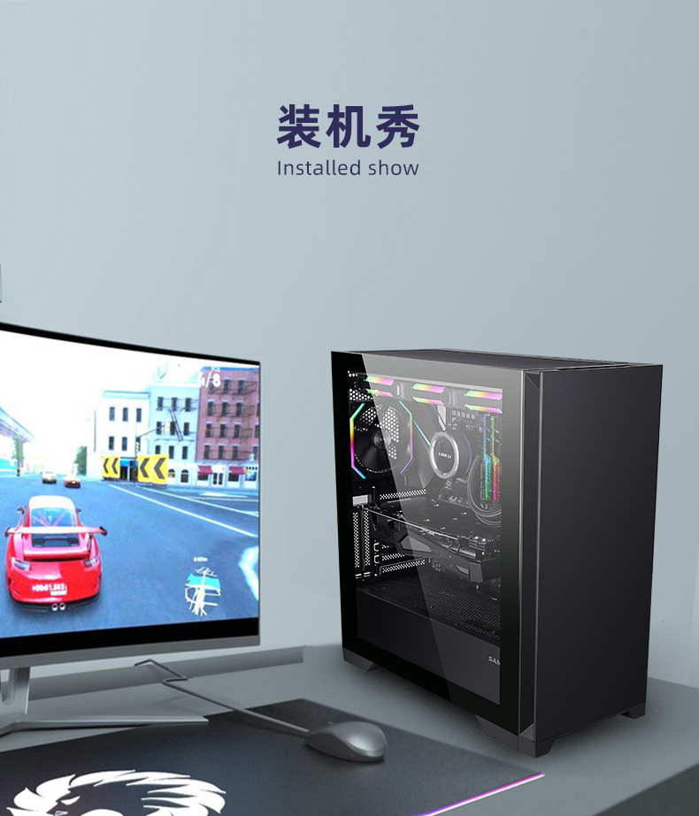 Бог Сан-Ма-Ян (бывший бог) боковой шасси, передающий воду с большими цепками, настольная поддержка настольного стола 360 e-ATX с водяным охлаждением.