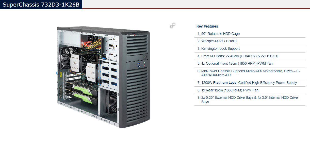 超微 732d3-1k26b тихий 4U Средняя башня Кейс 4 Диск 1200 Вт платиновой мощность e -ATX