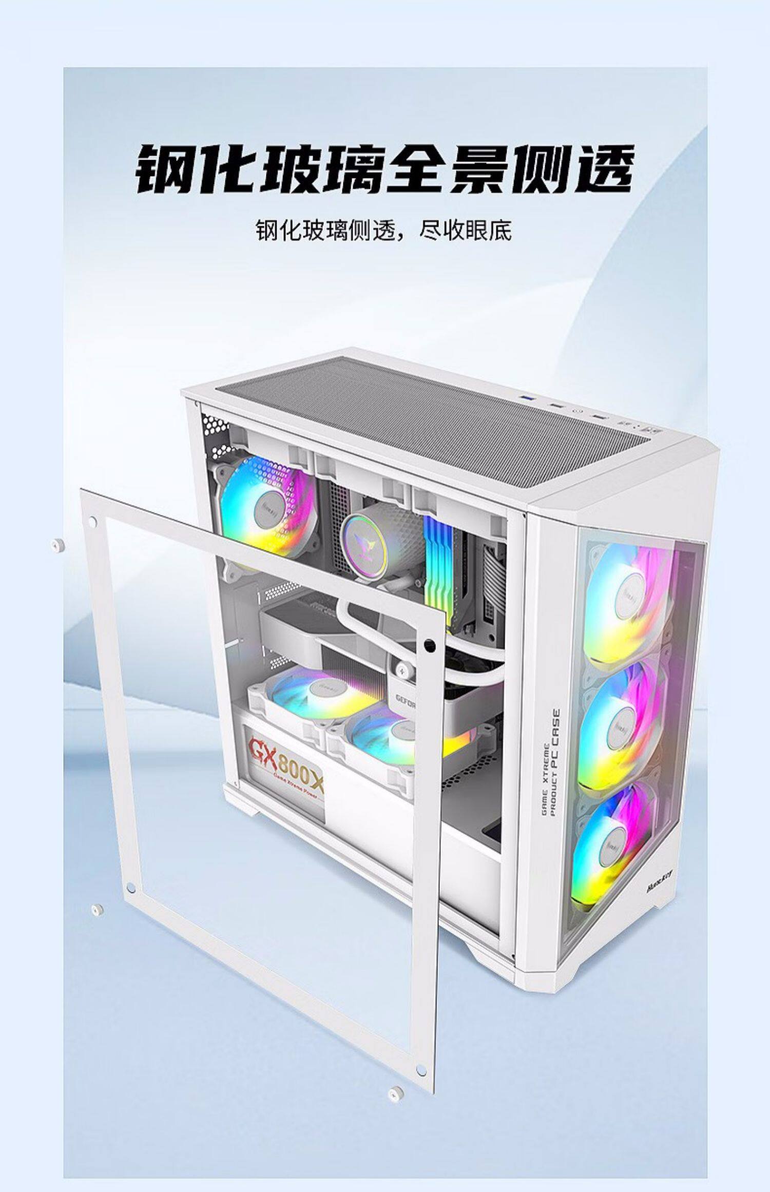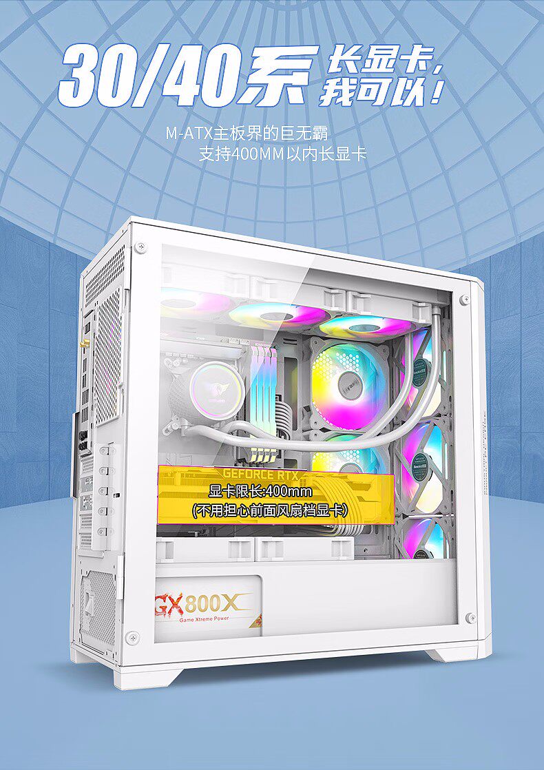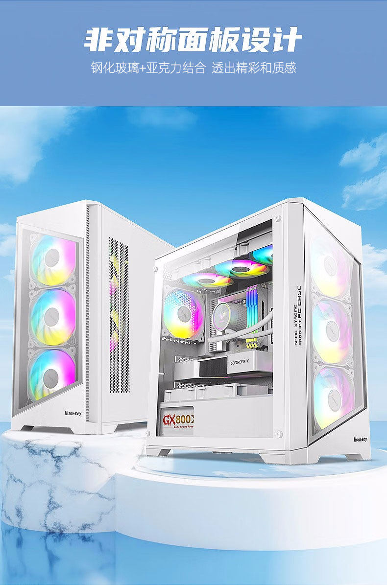 [Новый продукт] Hangjia GX760S Крепость белый 360 стеклянный боковой корпус с водяным охлаждением M-ATX