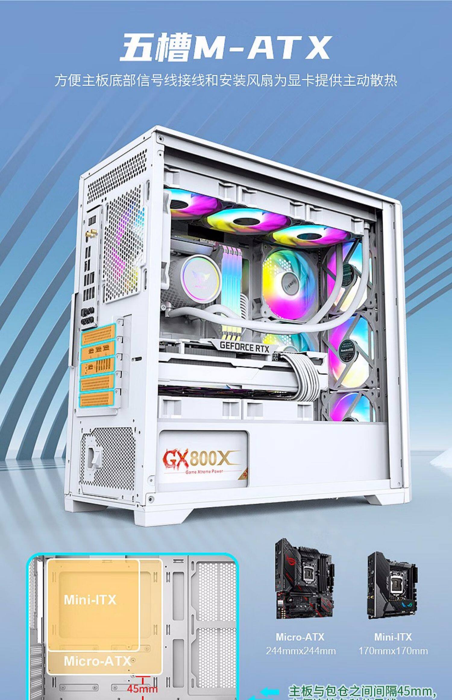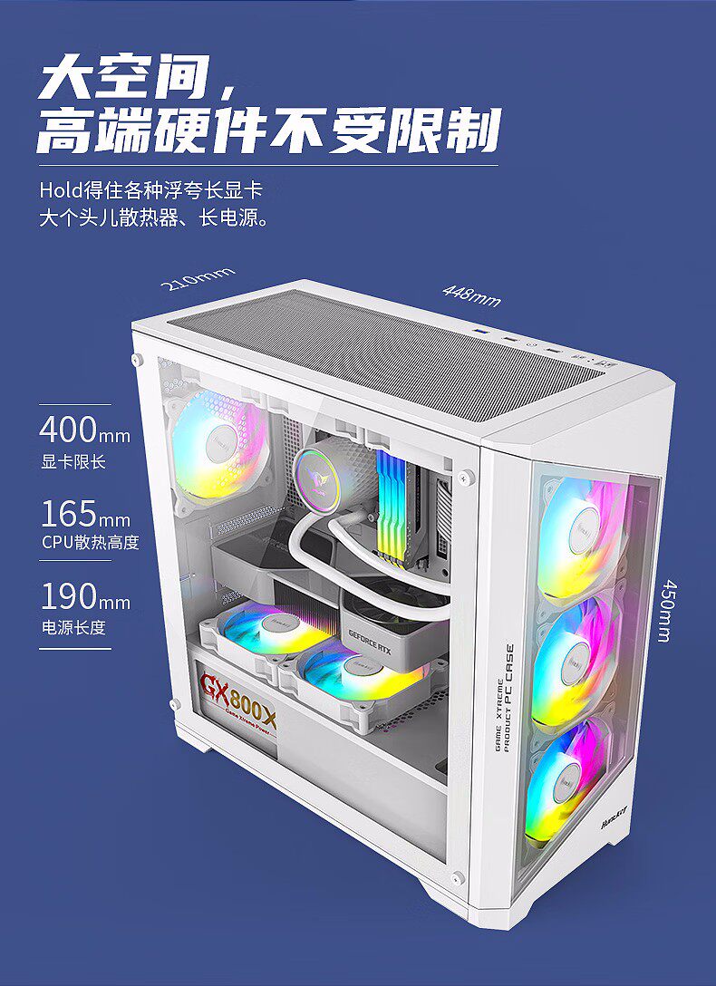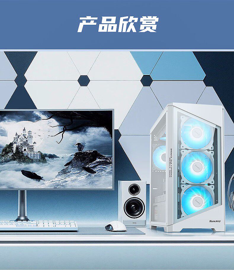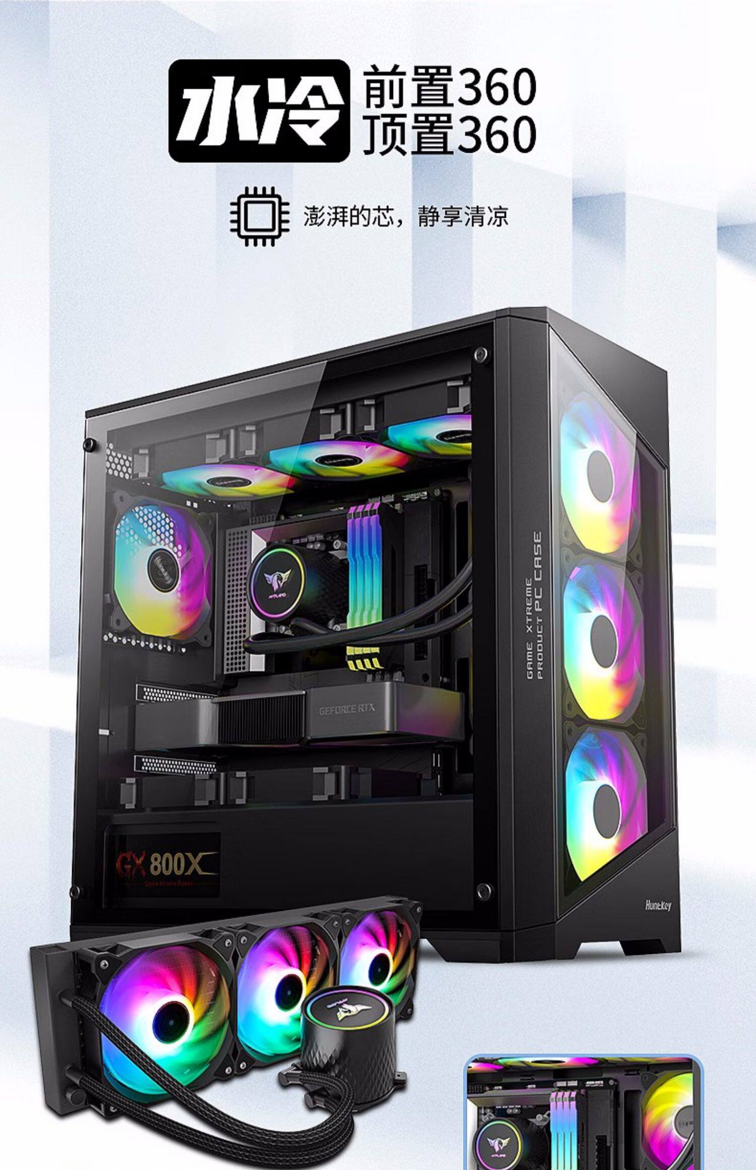 [Новый продукт] Hangjia GX760S Крепость белый 360 стеклянный боковой корпус с водяным охлаждением M-ATX