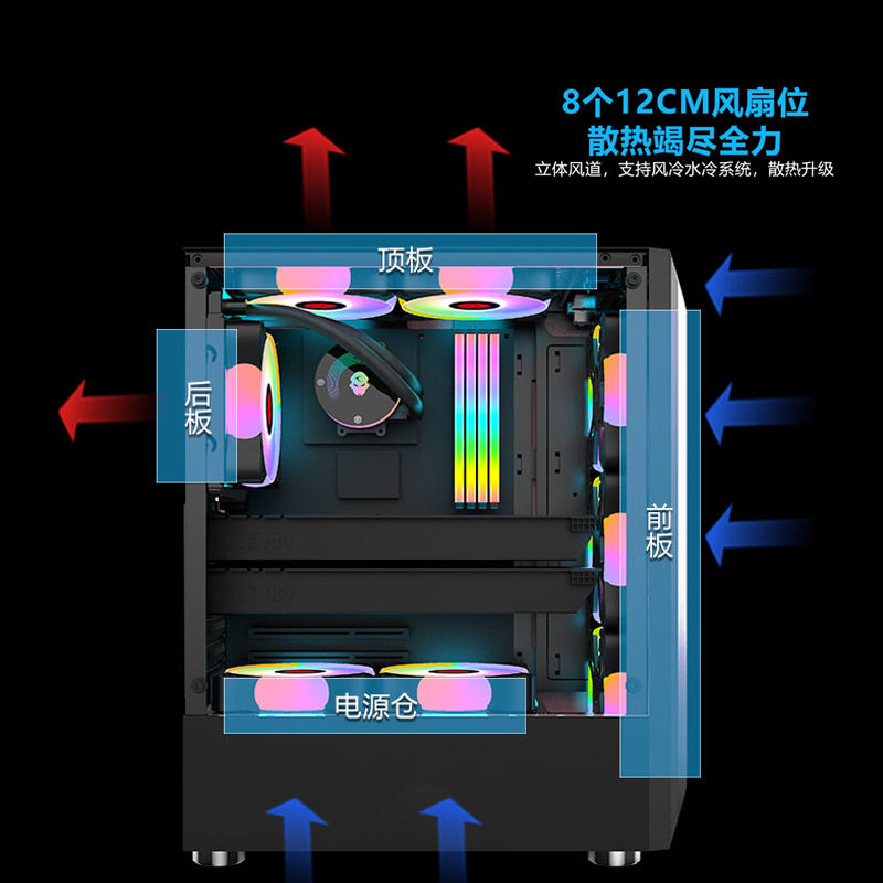 玩嘉 Zunyao Case RGB Light Strip ATX настольный компьютер Главный корпус водяной боковой боковой бок прозрачный черный/белый/розовый