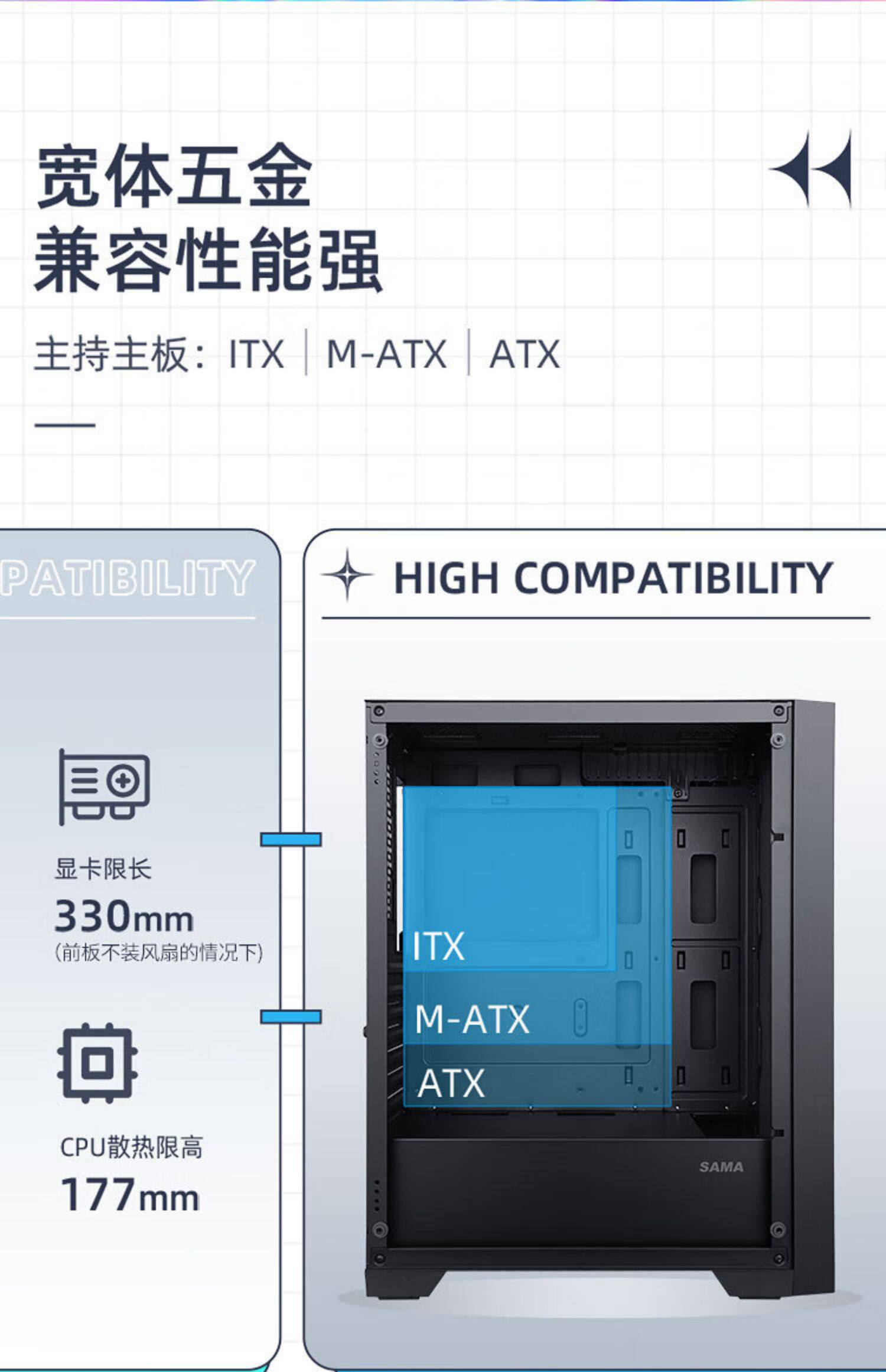 Сама (Сама) Светлая башня -поддержание ATX Motherboard 240 Water Cold Side Game Gaming