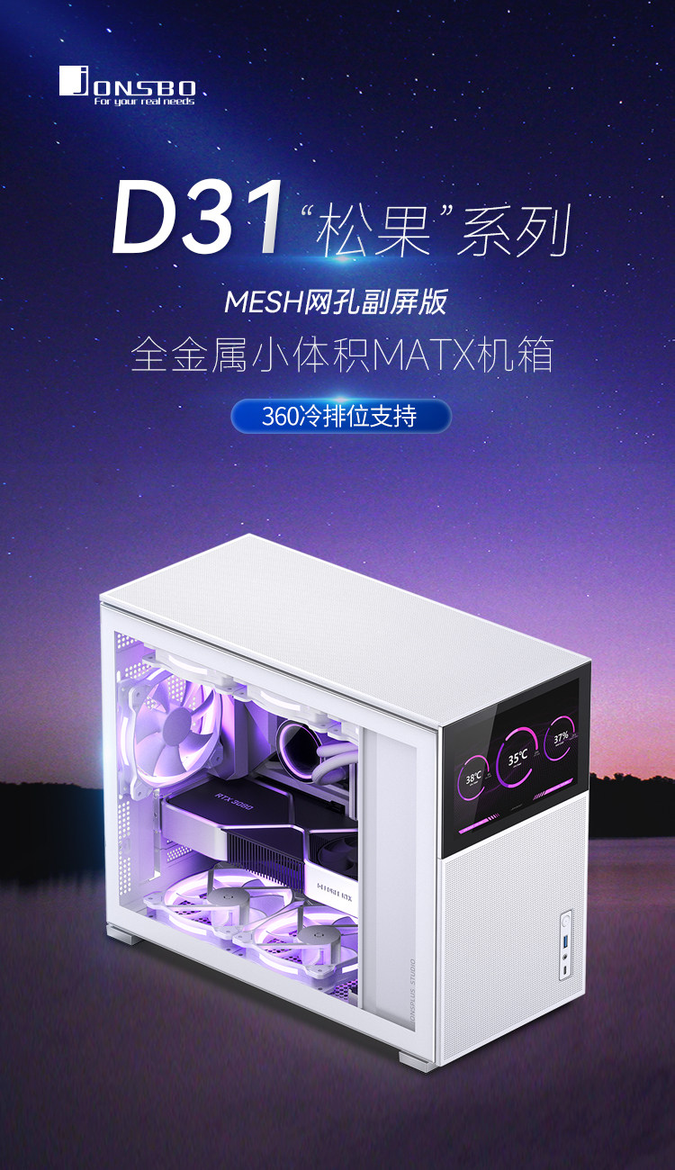 Шасси Jonsbo D31MESH поддерживает 360 Микро-шасси на водяном охлаждении со вторичным экраном и боковой прозрачной стали