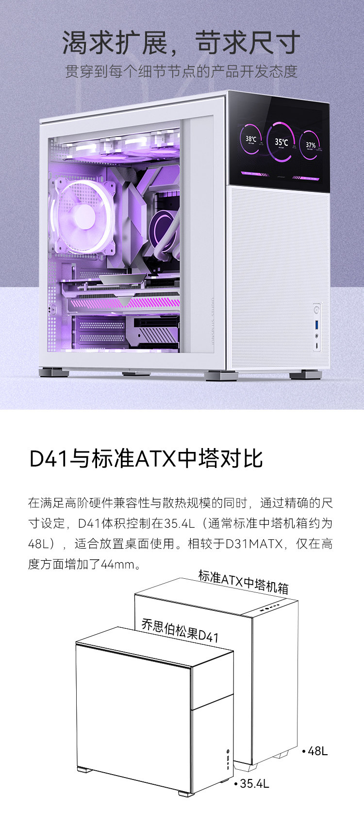 Jonsbo (Jonsbo) сосновые конусы D31/D41 Шасси Matx Small Glume ATX Прозрачный экран 360 Cold Row