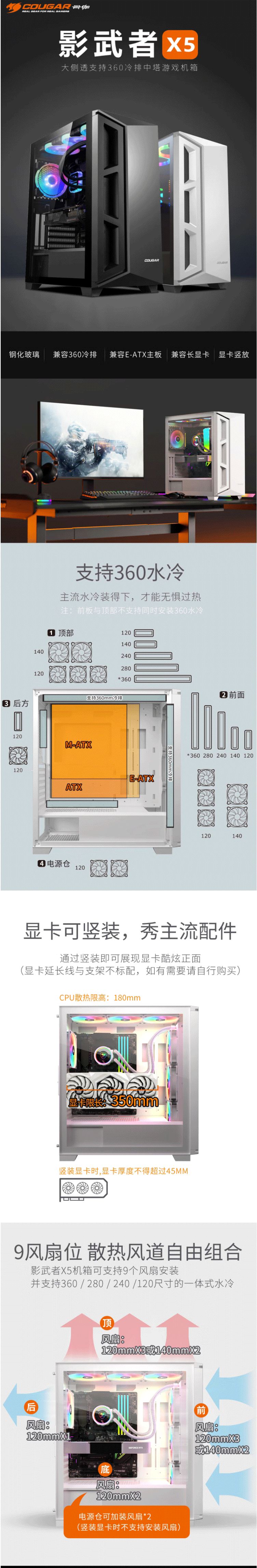 骨伽 (Cougar) Shadow Warrior x5 Desktop Game Transparent Glass Computer Computer Case
