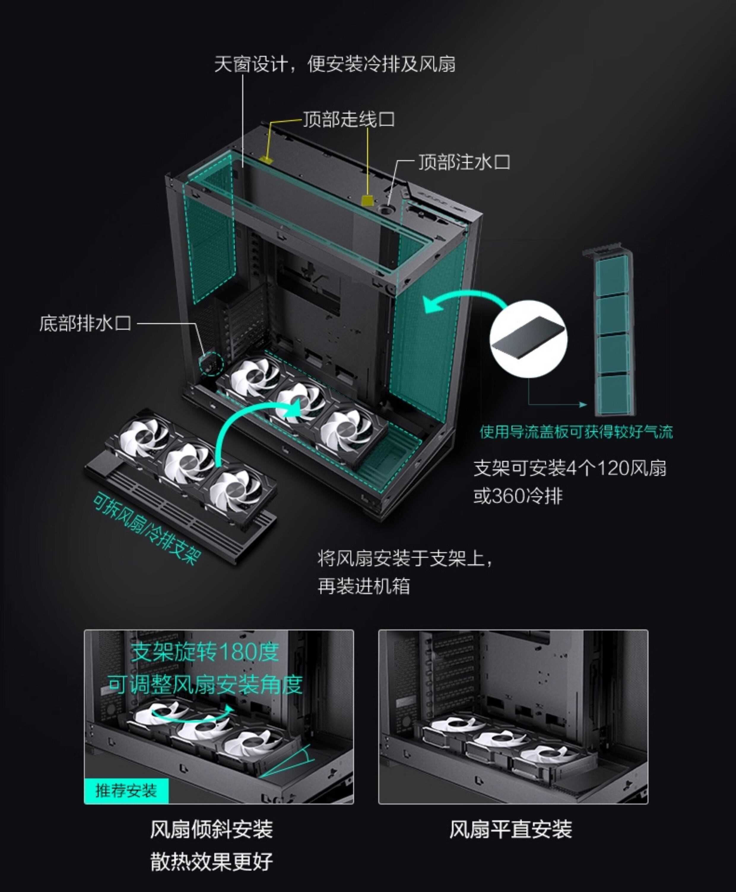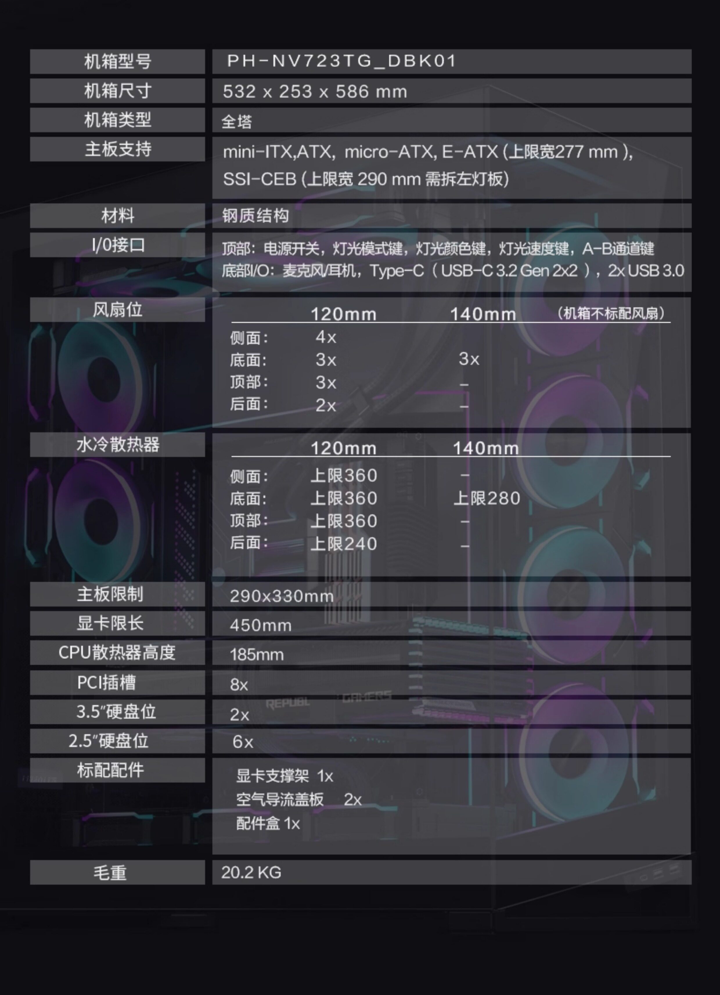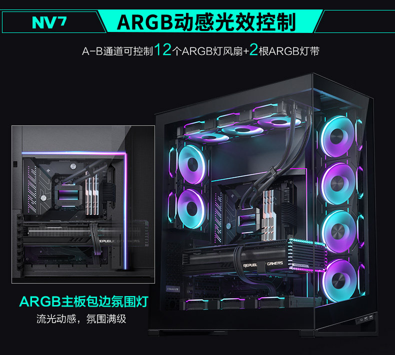 Phanteks Wind Chaser NV7 723 Полный просмотр Колонны с двусторонним размещением 360 водяного охлаждения 5090 Коробка компьютера
