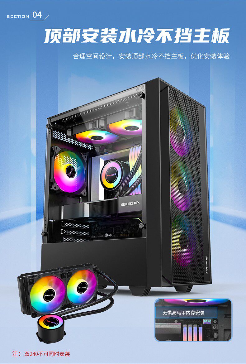 Hangjia G5/G63 Saiyaren Desktop Computer Mainframe Matherboard 240 Water Cooling Glass-Transsparent Box