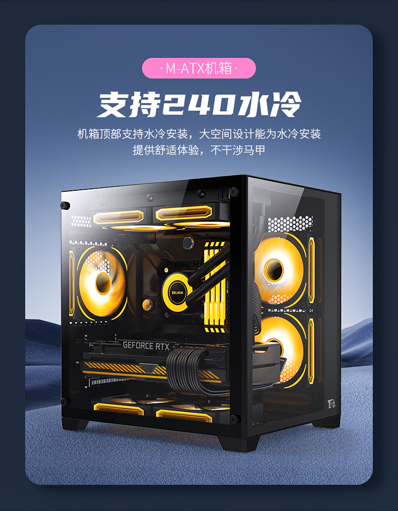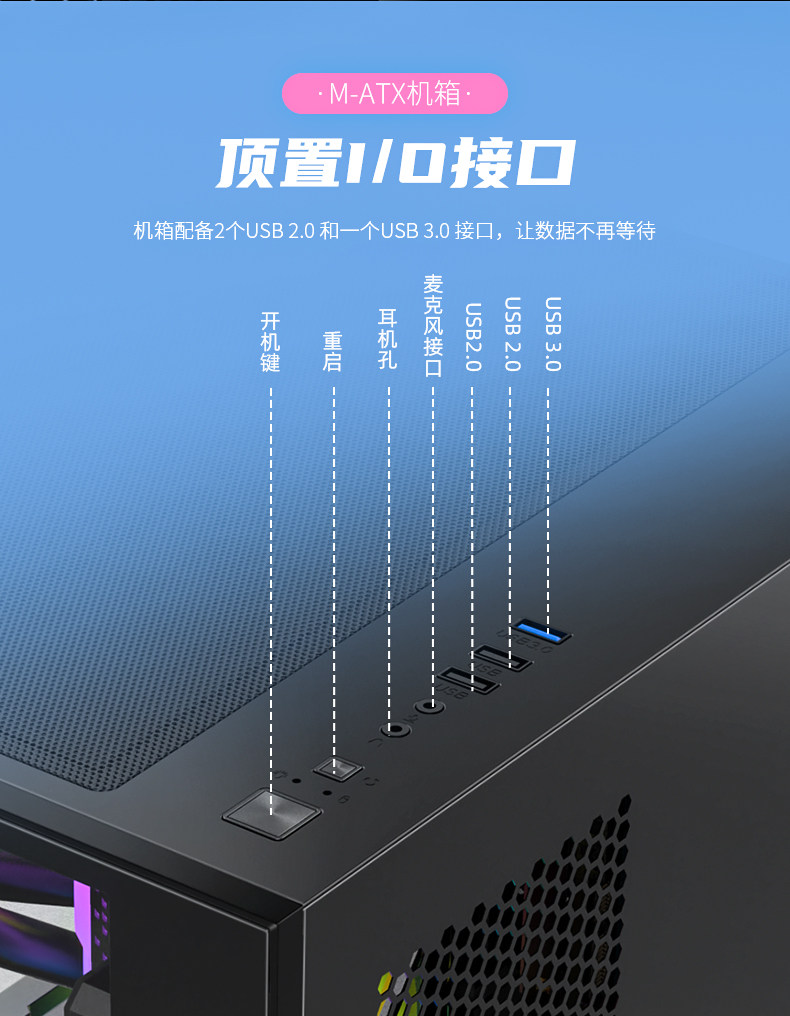 百盛 V320 First Love Sea View Room Computer Box Host M-ATX Белая сторона прозрачная мини-шасси 920
