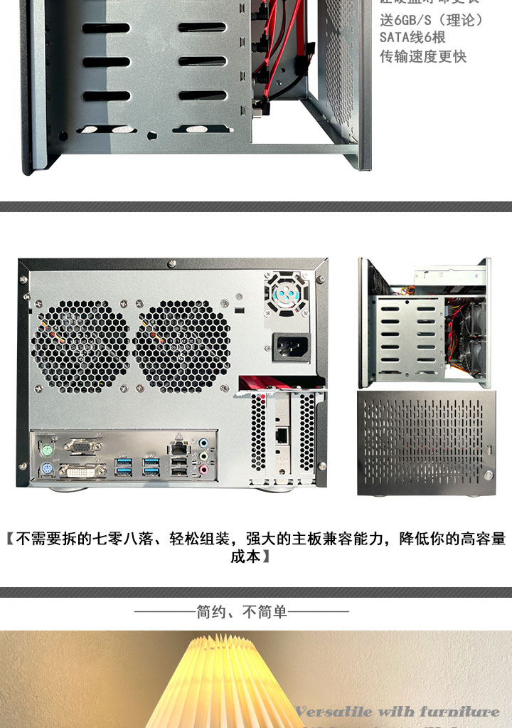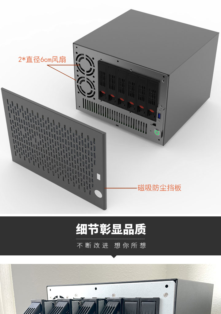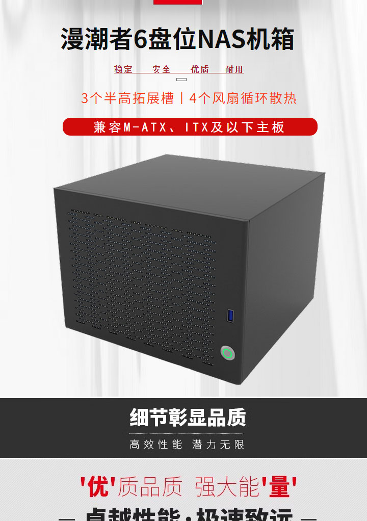 漫潮者 [nas私有云6盘位大板中板储存伺服器家用桌面式热插拔主机壳]