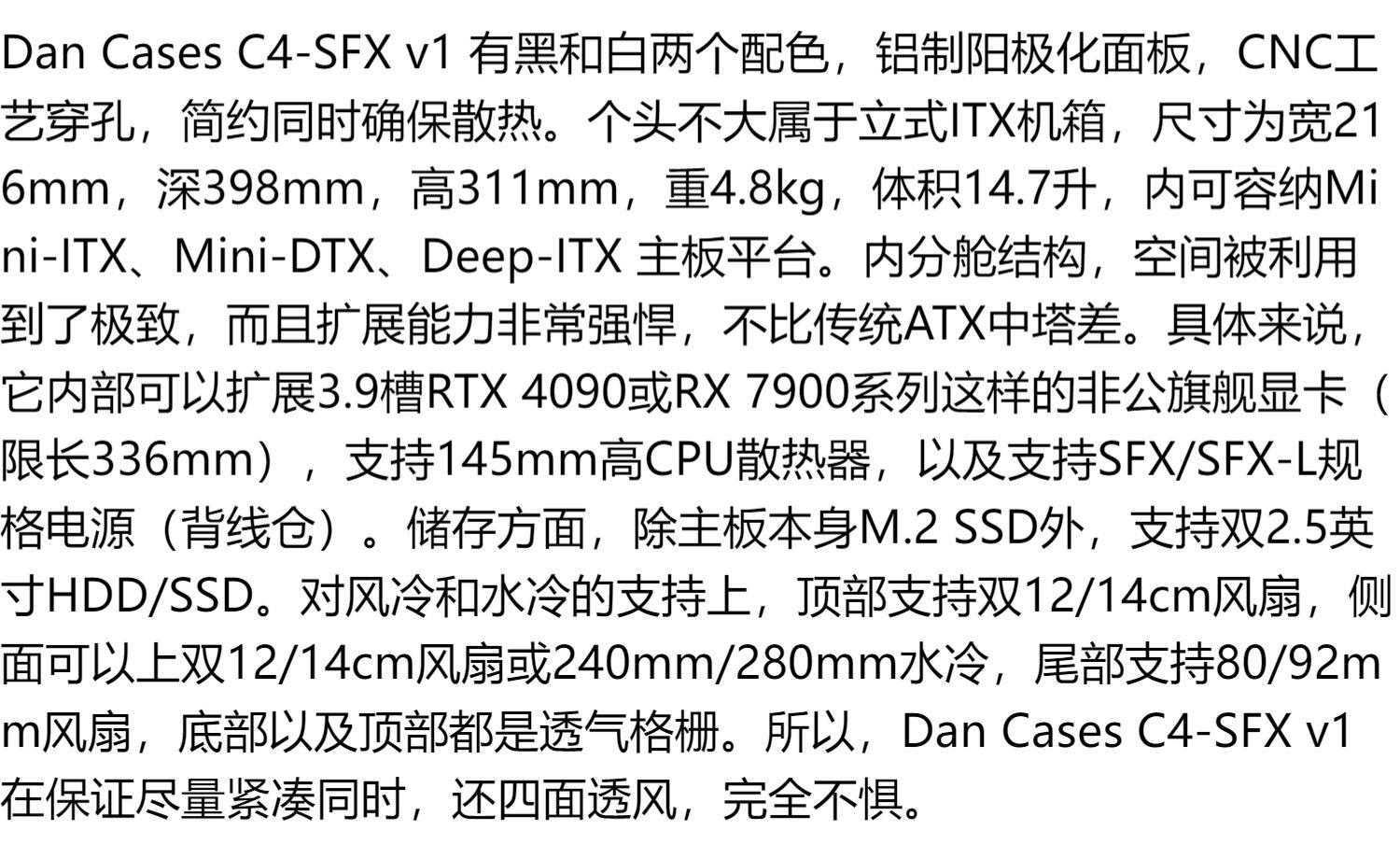 Данные случаи C4-SFX v1 поддерживает графическую карту RTX 40/RX 7900 ITX мини-шасси