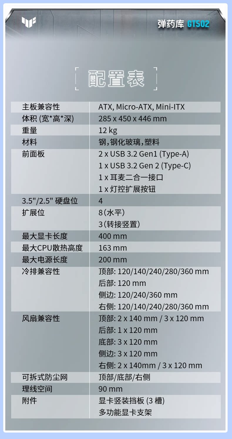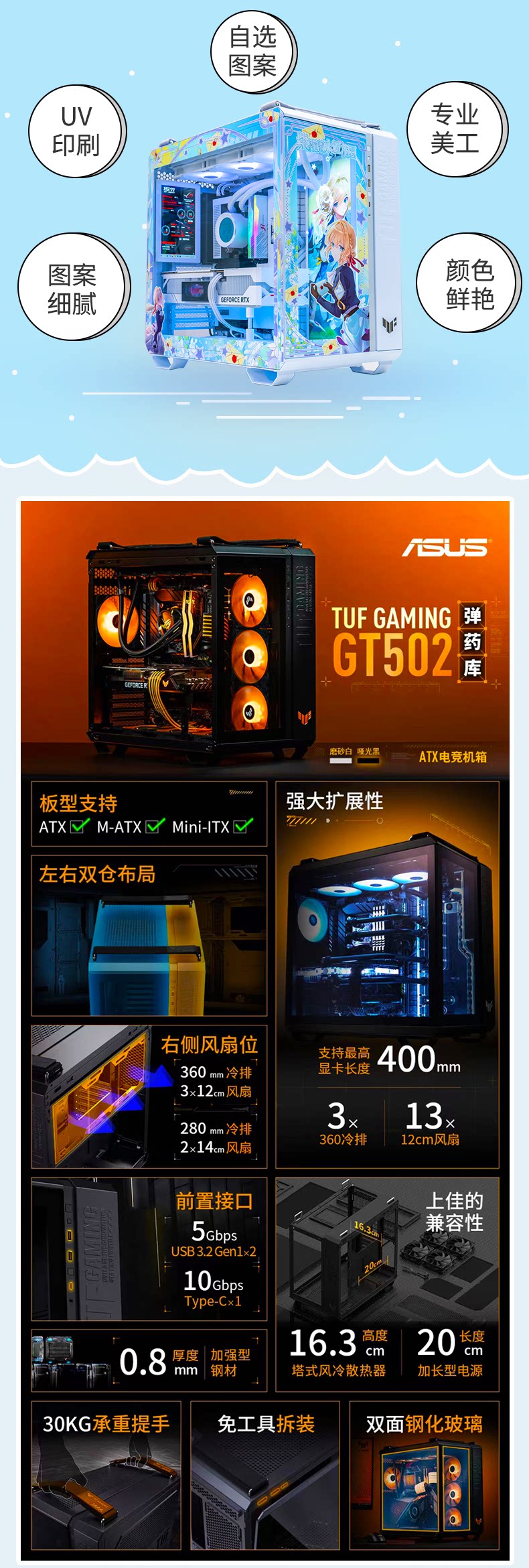 ASUS GT502 Ammunition Depot Unbounded Edition Внешний вид основного корпуса УФ-печать Индивидуальная световая подсветка для фотографий Настройка темы