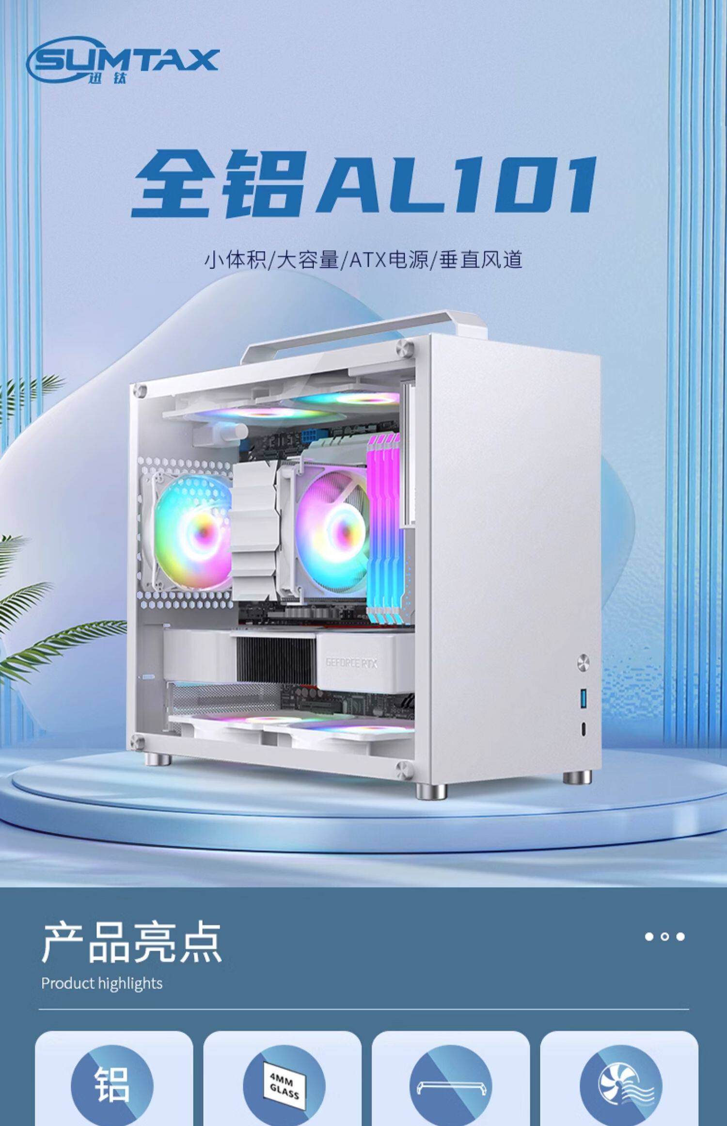 Sumtax/Xun Титановый алюминий Al-101 Показ дизайна Mini MANECUP Стеклянная сторона Материнская плата Matx