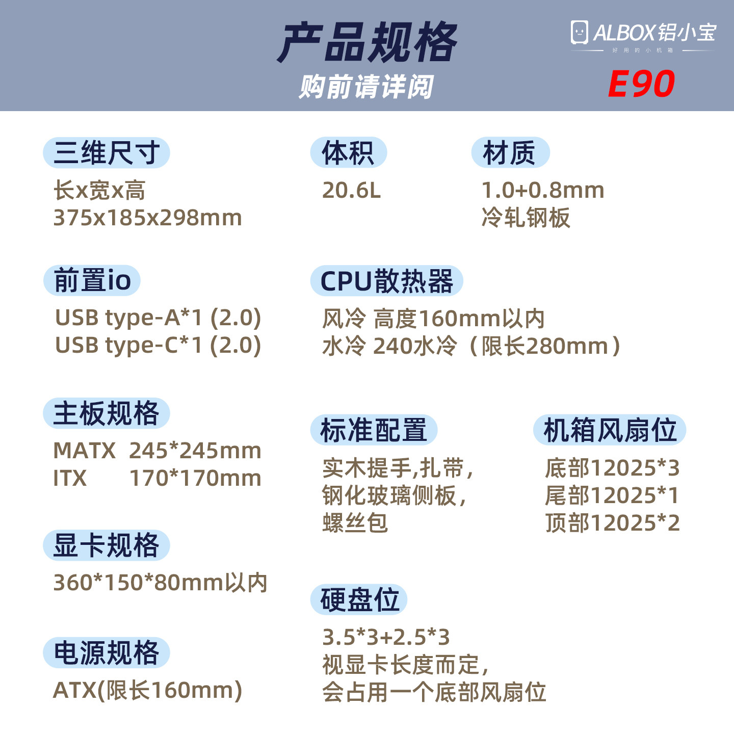 Albox Aluminum Small Treasure E90 Mini Portable Compact Matx Portable Host Host Host Computer Cooling
