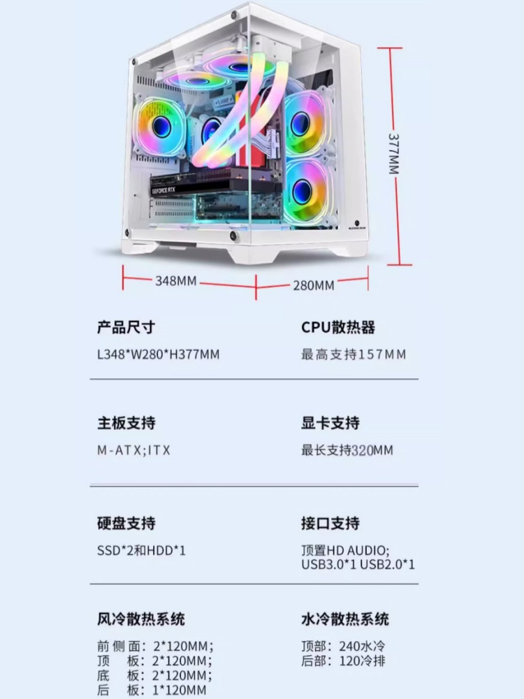 Wanjia Orphan Brave Mini с видом на море, матричное шасси, полностью боковое прозрачное стекло, 240, компьютерный корпус без колонки с водяным охлаждением
