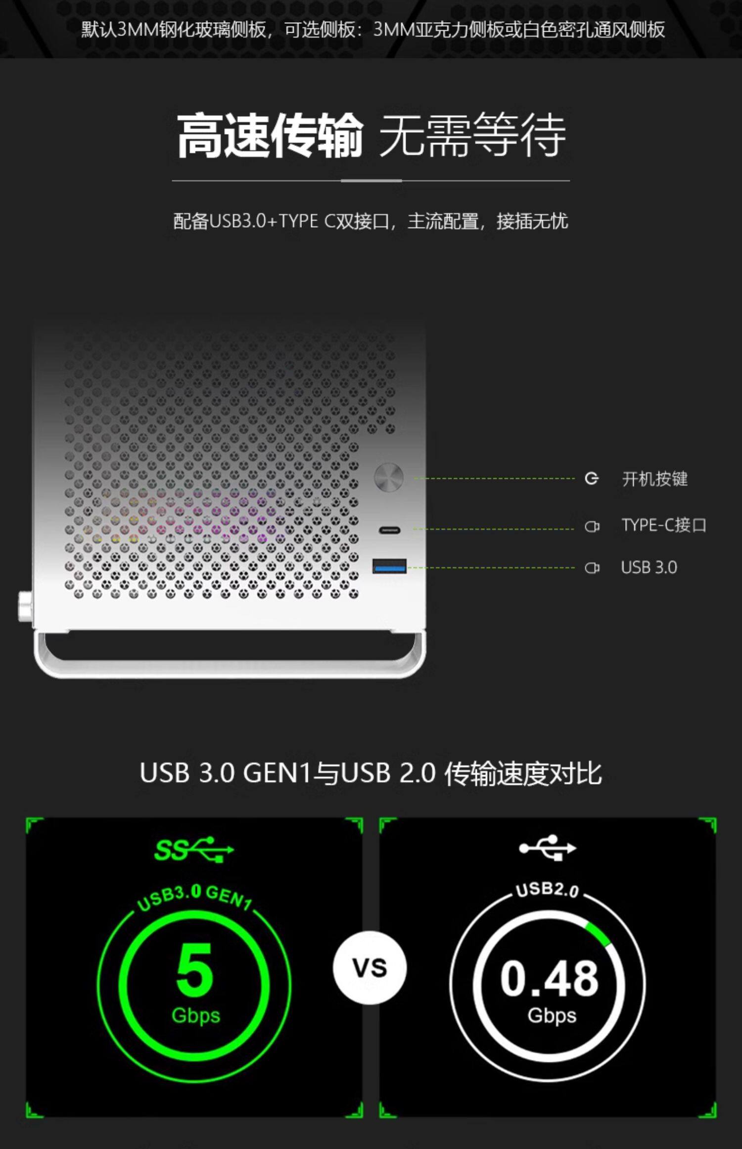 Основной корпус Fish Nest G5MAX matx, белый основной корпус, прозрачная черная сторона, настольный мини-ITX, маленький компьютер, пустой основной корпус, блок питания