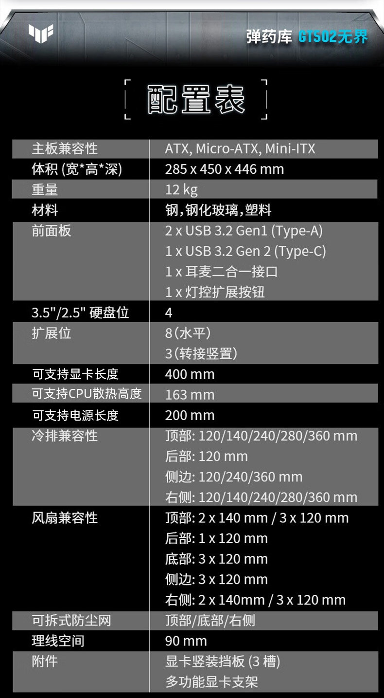 ASUS GT502 Библиотека боеприпасов неограниченная версия полной боковой стороны башни ATX без стоячей столб