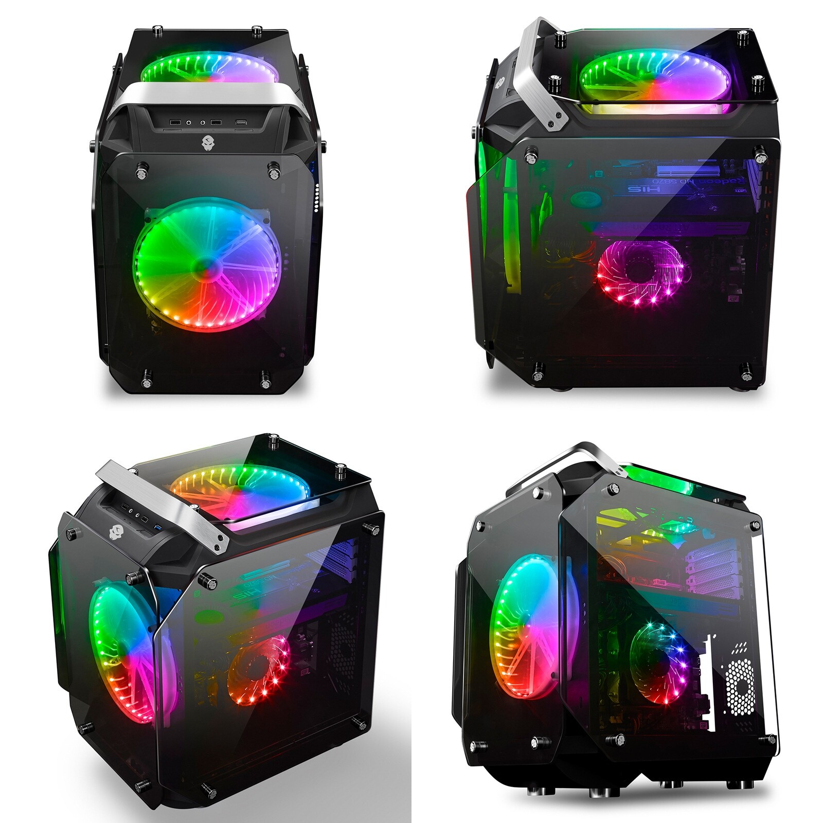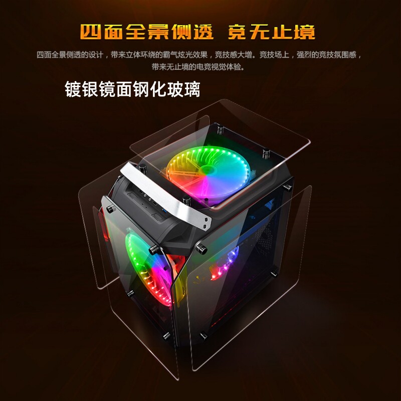 玩嘉 Vajrayana Case Atx Cube Cube Alien Horizontal Desktop Console Console Четыре стеклянную комнату для морских пейзажей в боковой