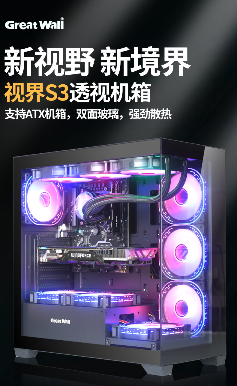 Отличная настенная шасси зрение S3/S1 Sea View Room Белый шасси atx шасси все -сиды компьютерного корпуса шасси