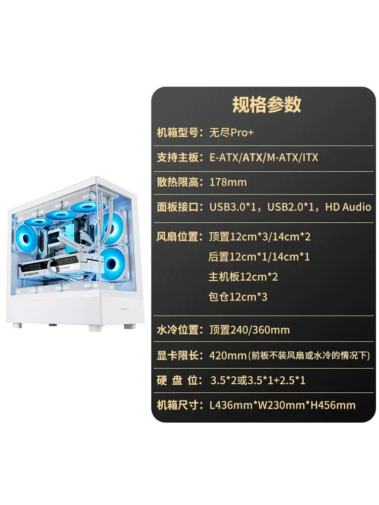 Xingu Endless Pro с видом на море, панорамный боковой прозрачный белый корпус ATX для настольного компьютера без колонн с водяным охлаждением