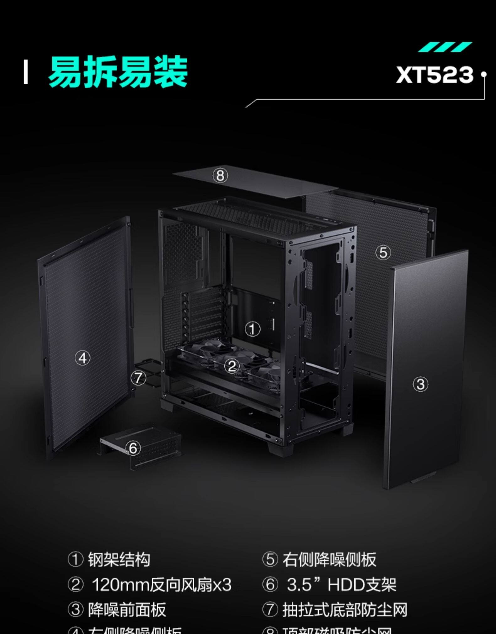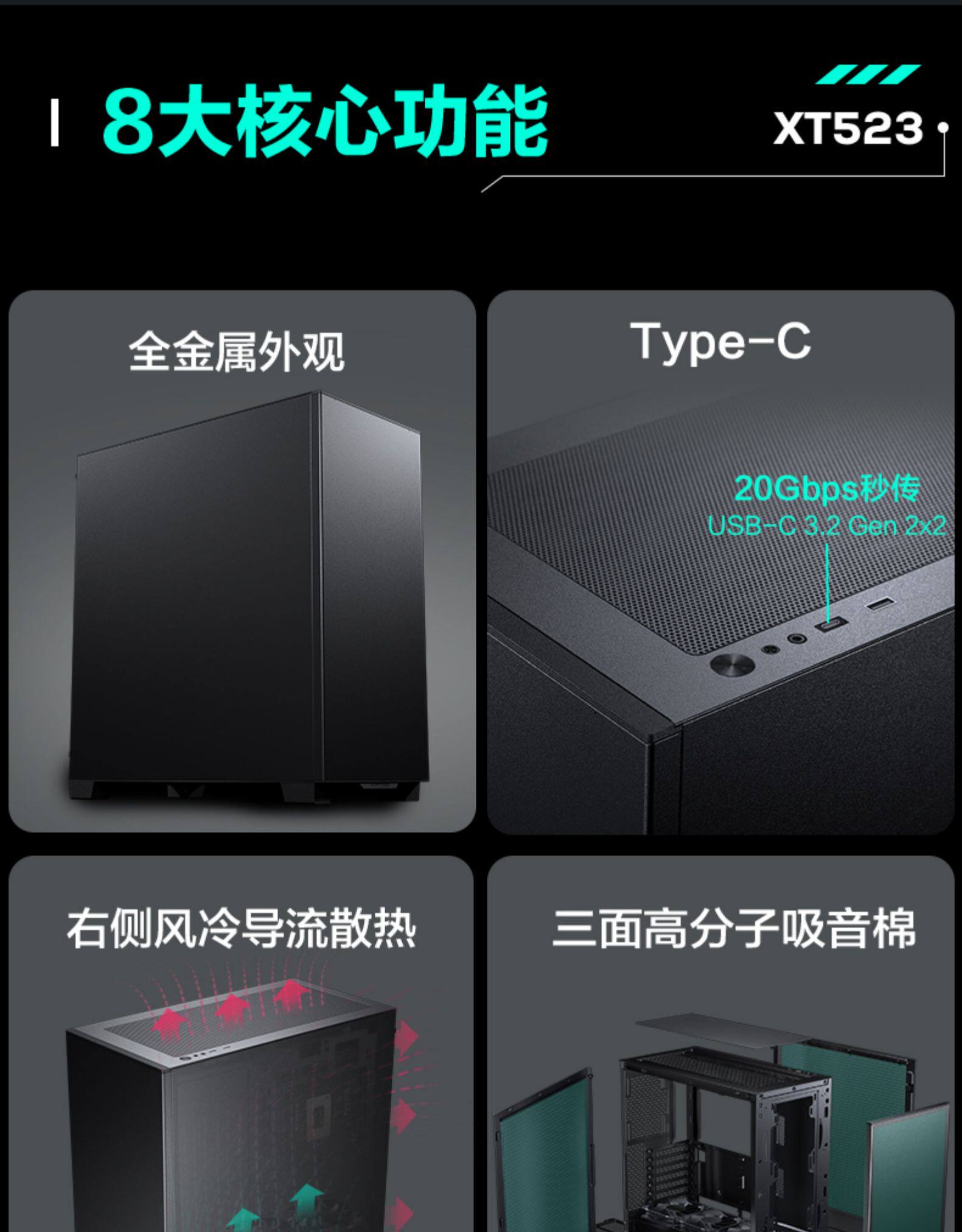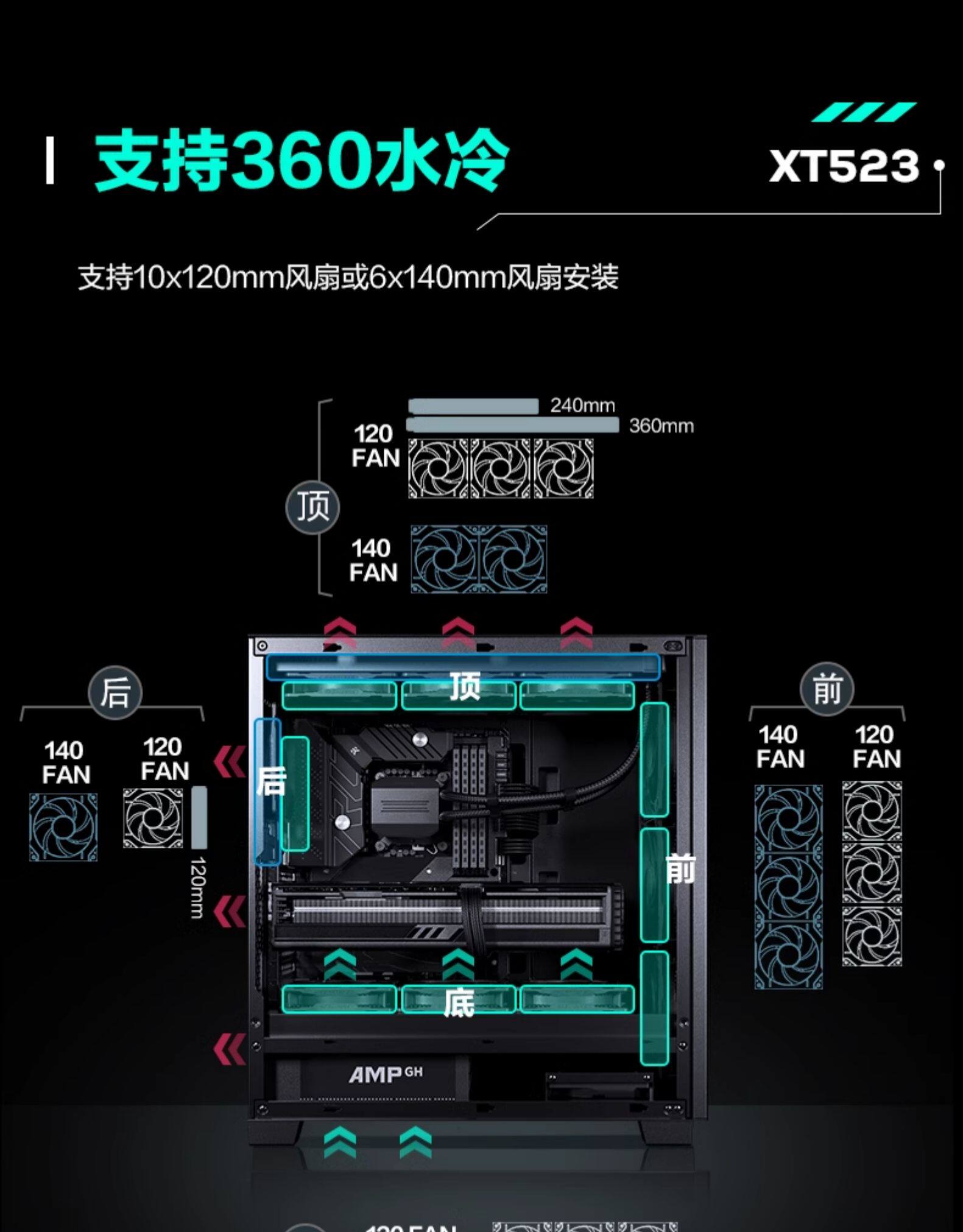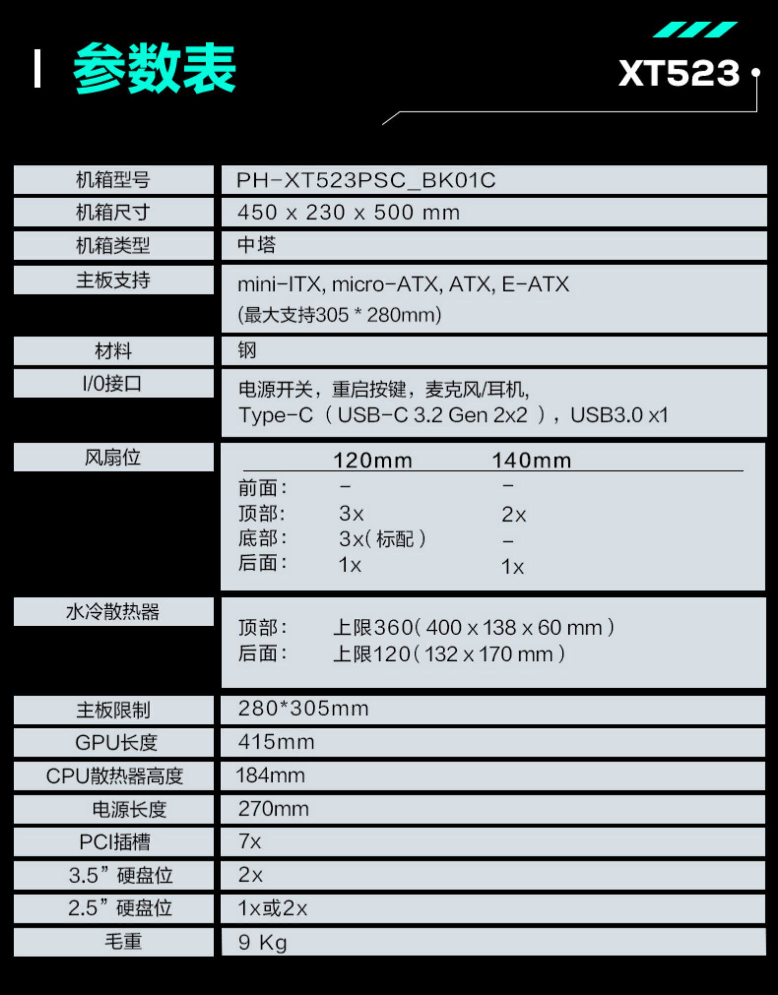 Phanteks Chaser XT523 Активный тихий снижение шума бизнес -режиссерский офис на рабочем столе на рабочем столе для компьютерного компьютера Water Computer