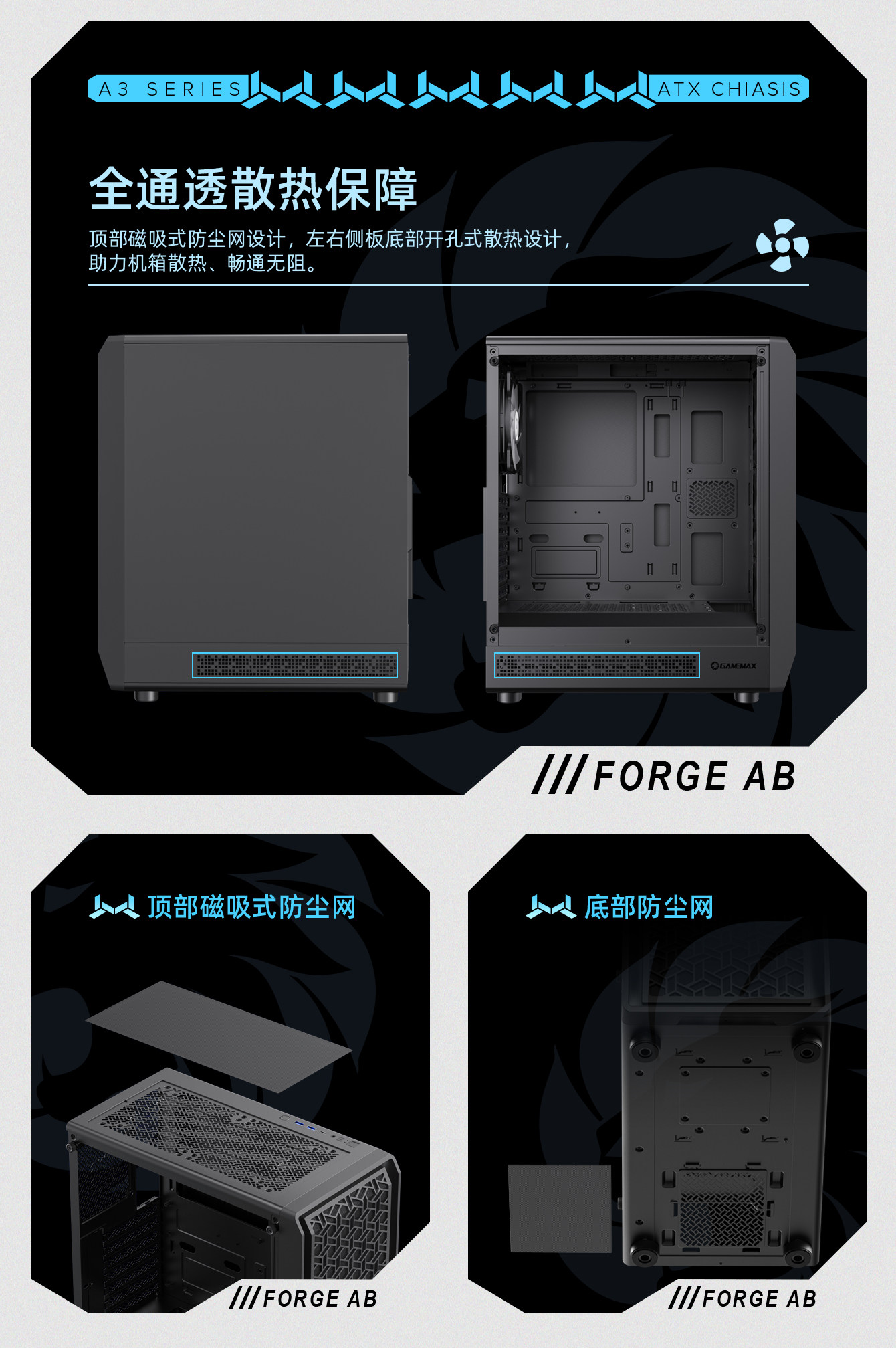 Корпус Mid-Tower GAMEMAX Forge AB, прозрачный с боков корпус большой платы ATX, поддерживает корпус с водяным охлаждением на 360°, корпус игрового компьютера, корпус Mid-Tower из материала SPCC