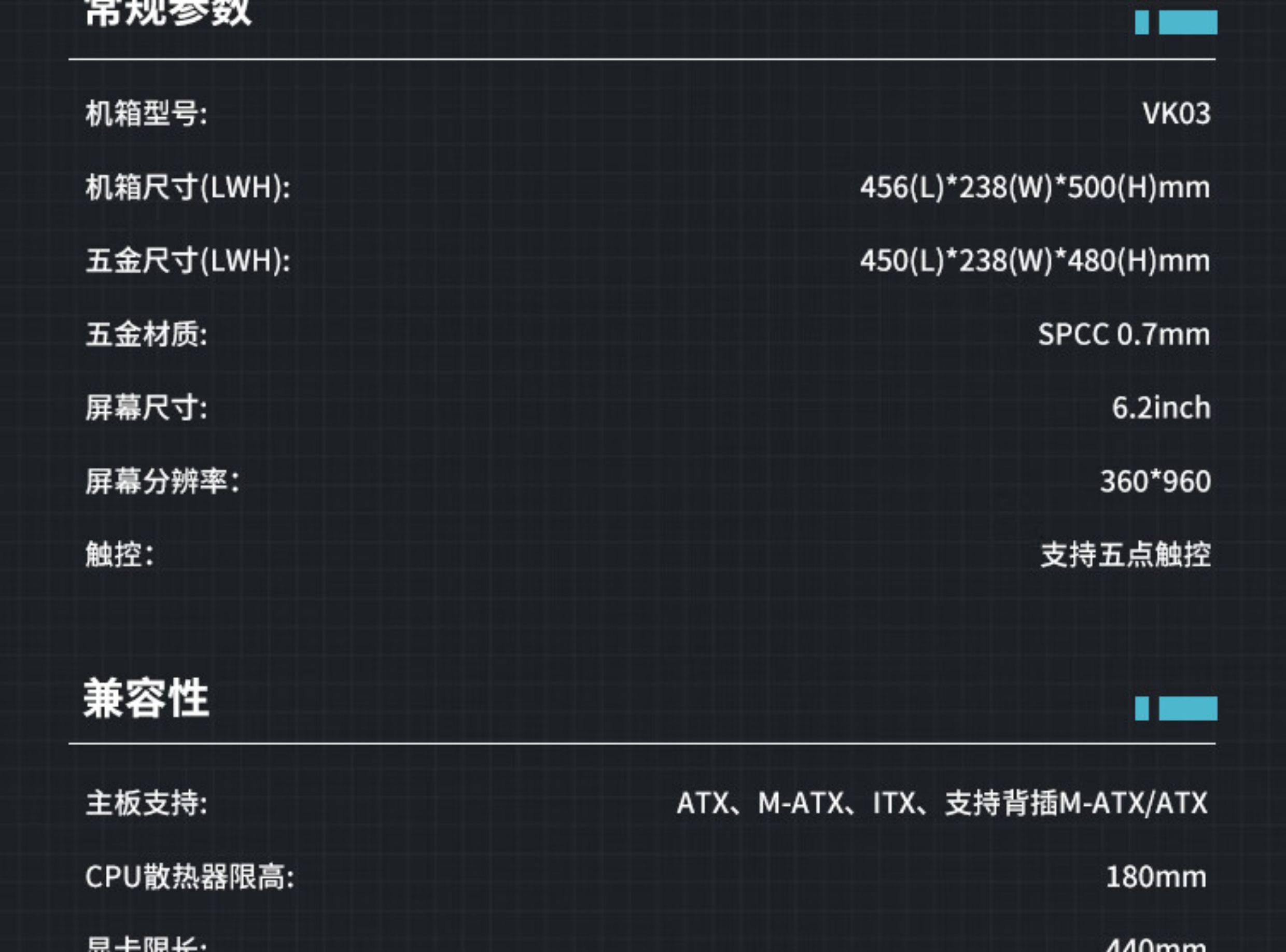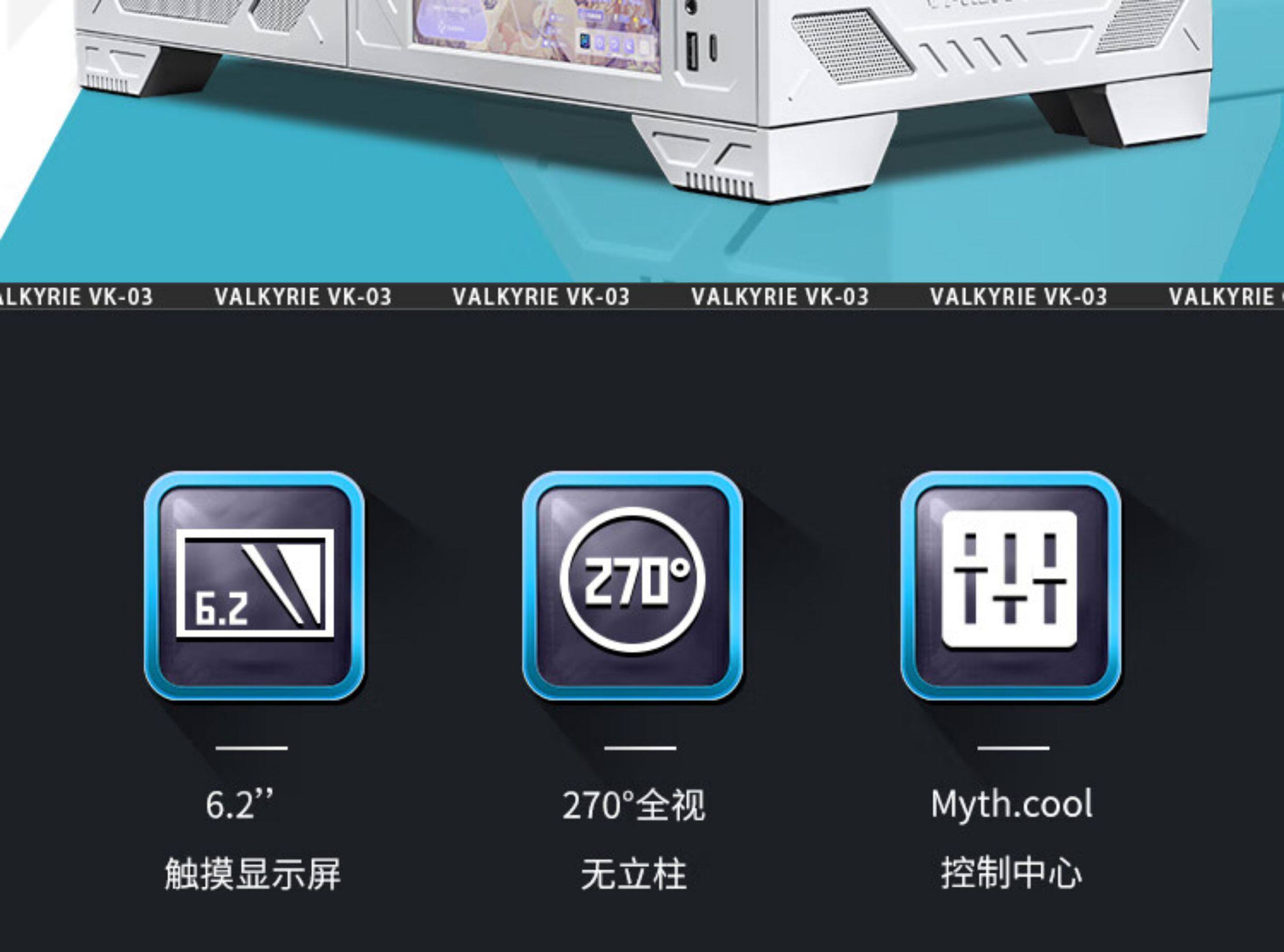 Основной корпус игрового компьютера Valkyrie VK03, настольный компьютер, 6,2-дюймовый сенсорный экран, без колонки, вид на море, задняя вилка ATX для комнаты