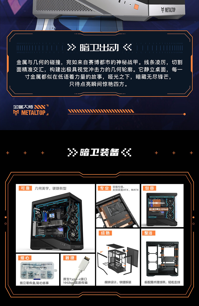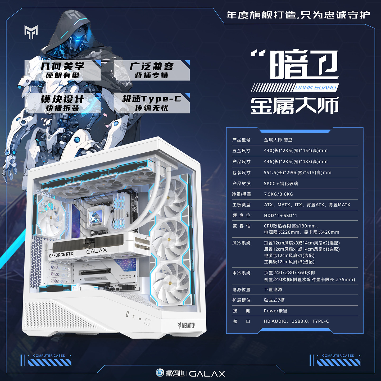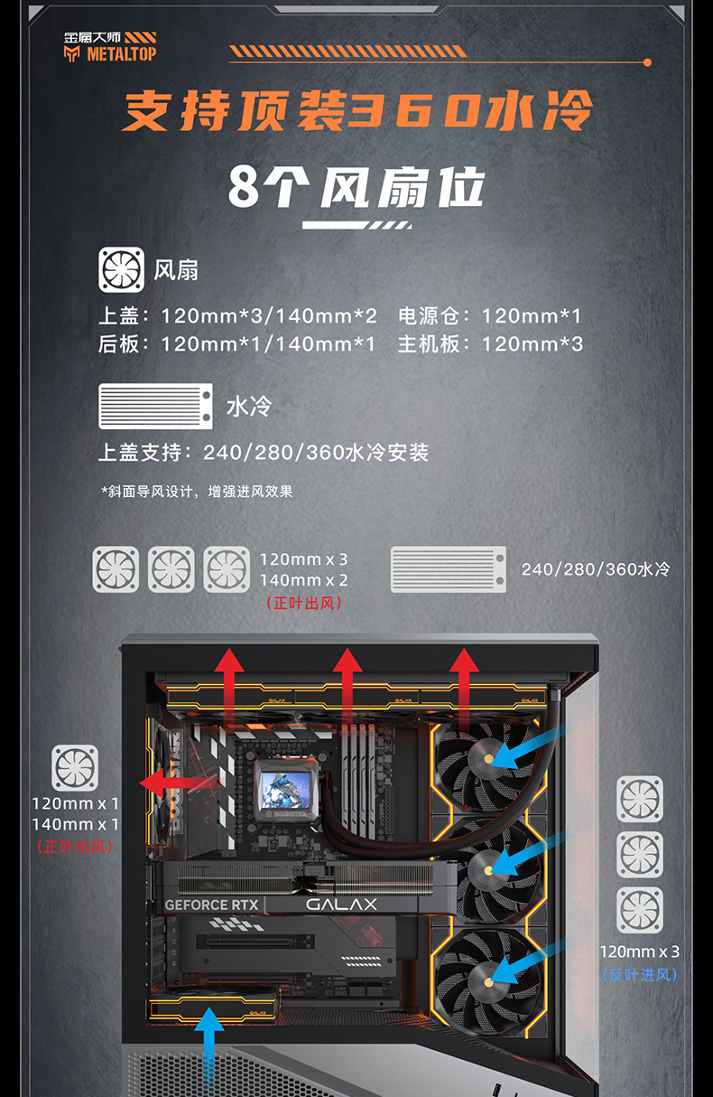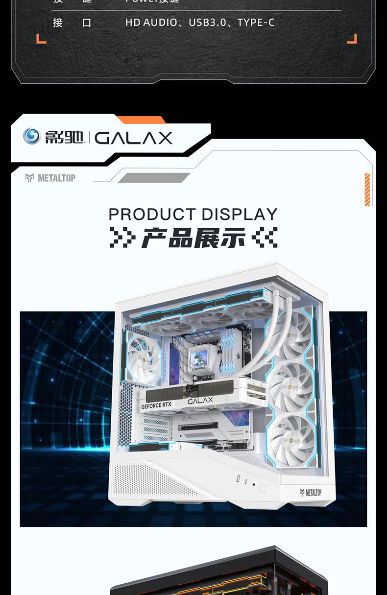 影驰 Металлический Master Secret Guard, безколонное стекло, вид на море, комната TYPEC, задняя заглушка, корпус для компьютера ATX с водяным охлаждением на 360 градусов