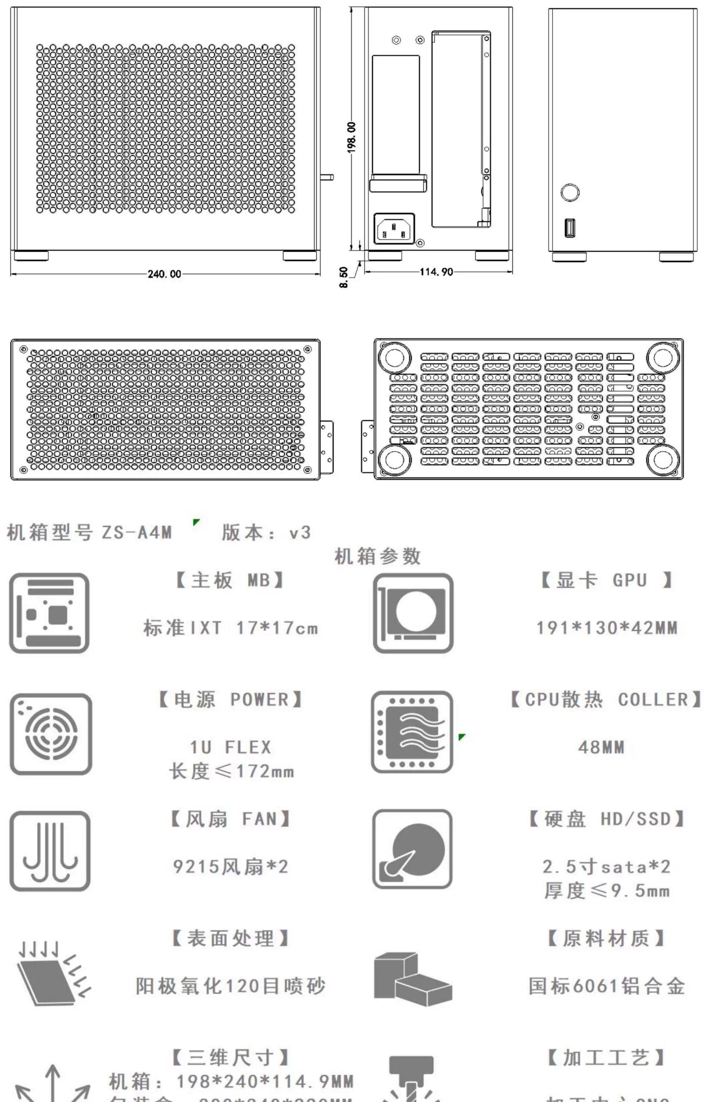 [Новая машина на складе] ZS-A4M /itx корпус для компьютера с короткой картой, версия V3 /5.4L, полностью алюминиевый, 1u
